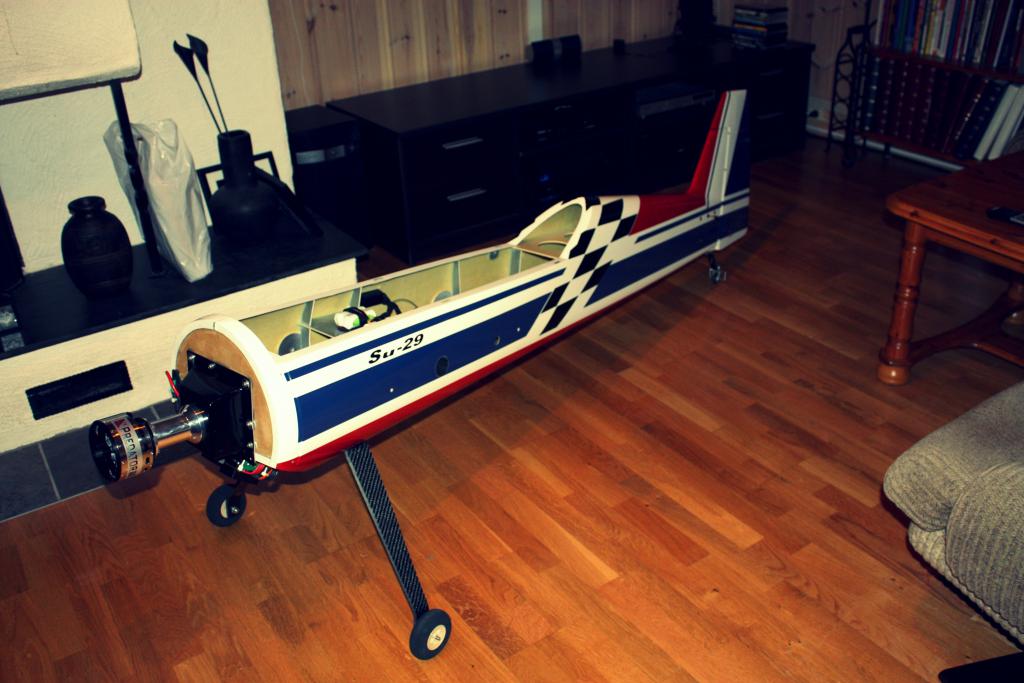 Her står jo motoren nesten i "friluft" så det bør gå bra. Spinneren kommer til å få noen halvmåne hull (tilsvarende som på Votec'n), som vil hjelpe til å dra luften rett inn over viklingene i motoren. Ellers er det ikke noe videre med baffling. Skal dog ta ut en åpning under i bakkant på cowlingen slik at luft passerer over regulatoren. Se om jeg må lage et lite vakuum slik at luften går greit igjennom. Videre må jeg se an om det bør tas hull i firewallen slik at batteriene også får litt luft. Det får jeg se an litt. Da må det igjen tas hull for ut-luft lenger bak i kroppen også...