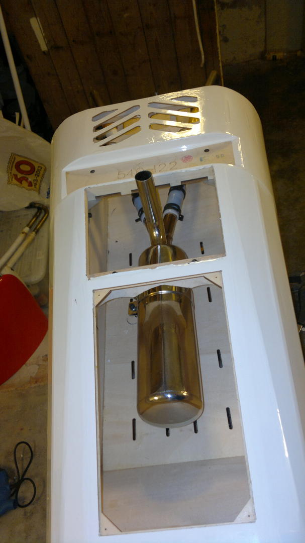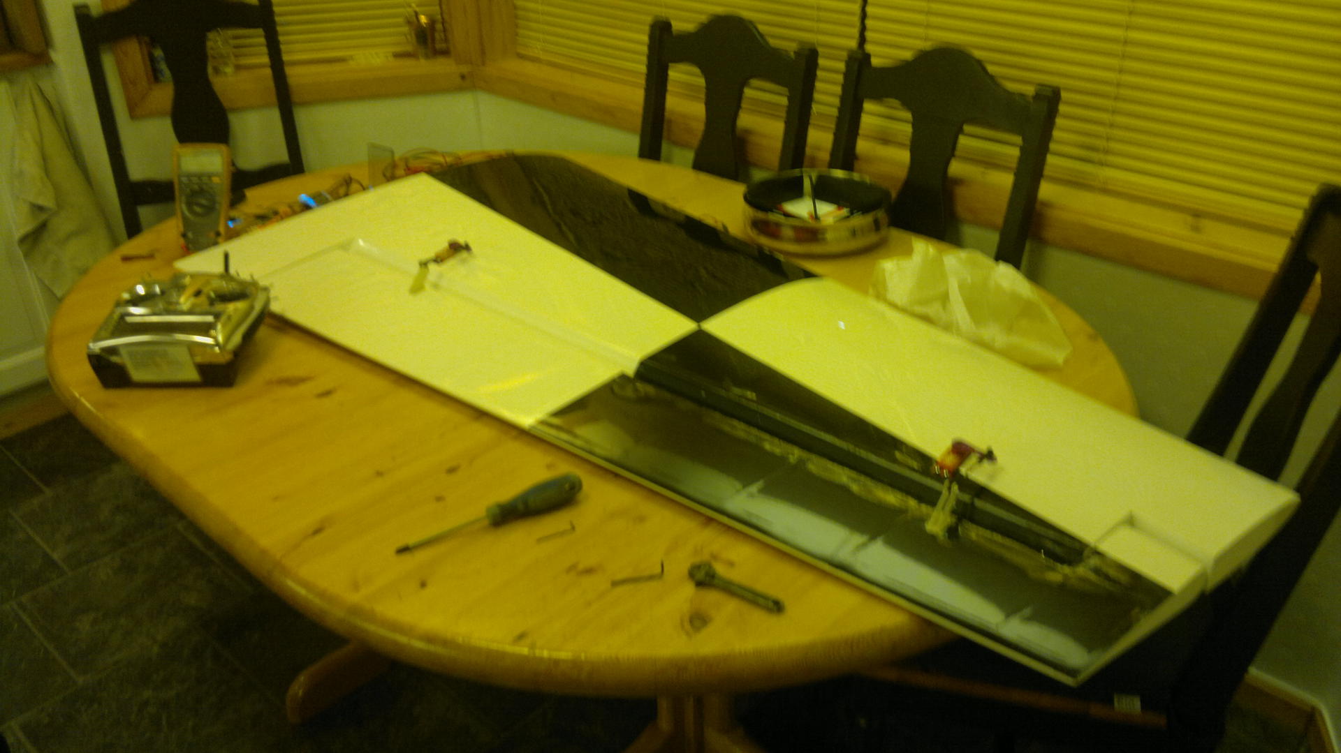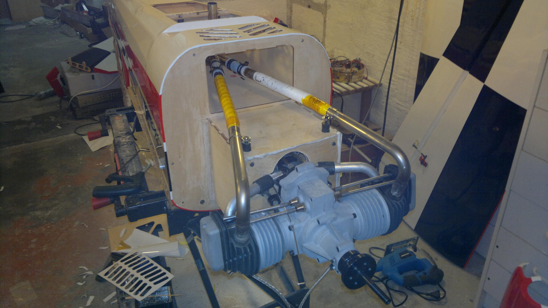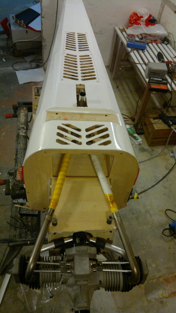 Da var sideror og servoer på plass. Understellsinnfestingen er noe jeg ikke er helt fornøyd med. Der er der 4 6mm bolter med mutre som holder understellet. Men for å holde på disse mutrene må covlingen av. Noe som er utrolig tungvint om en vil ta av understellet under transport. Vurderer derfor å legge en treplate over aluminiums vinkelene inne i tunellen og bruke 6mm innslagsmutre i denne platen. Noen som har andre ideer?