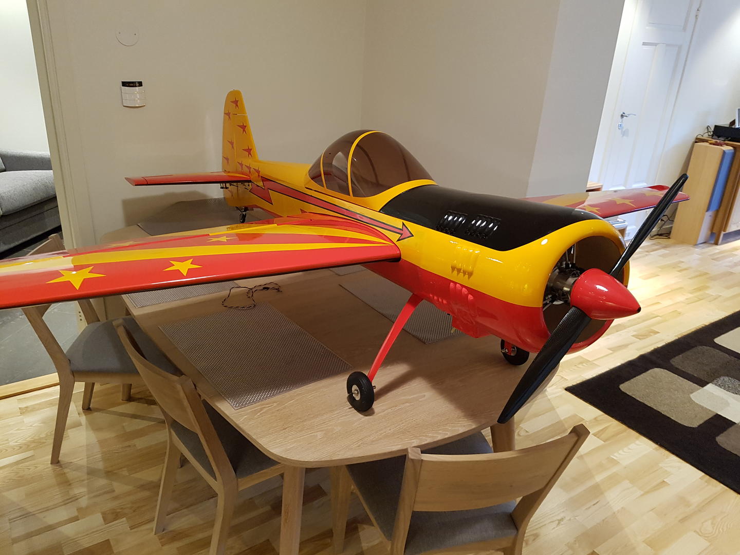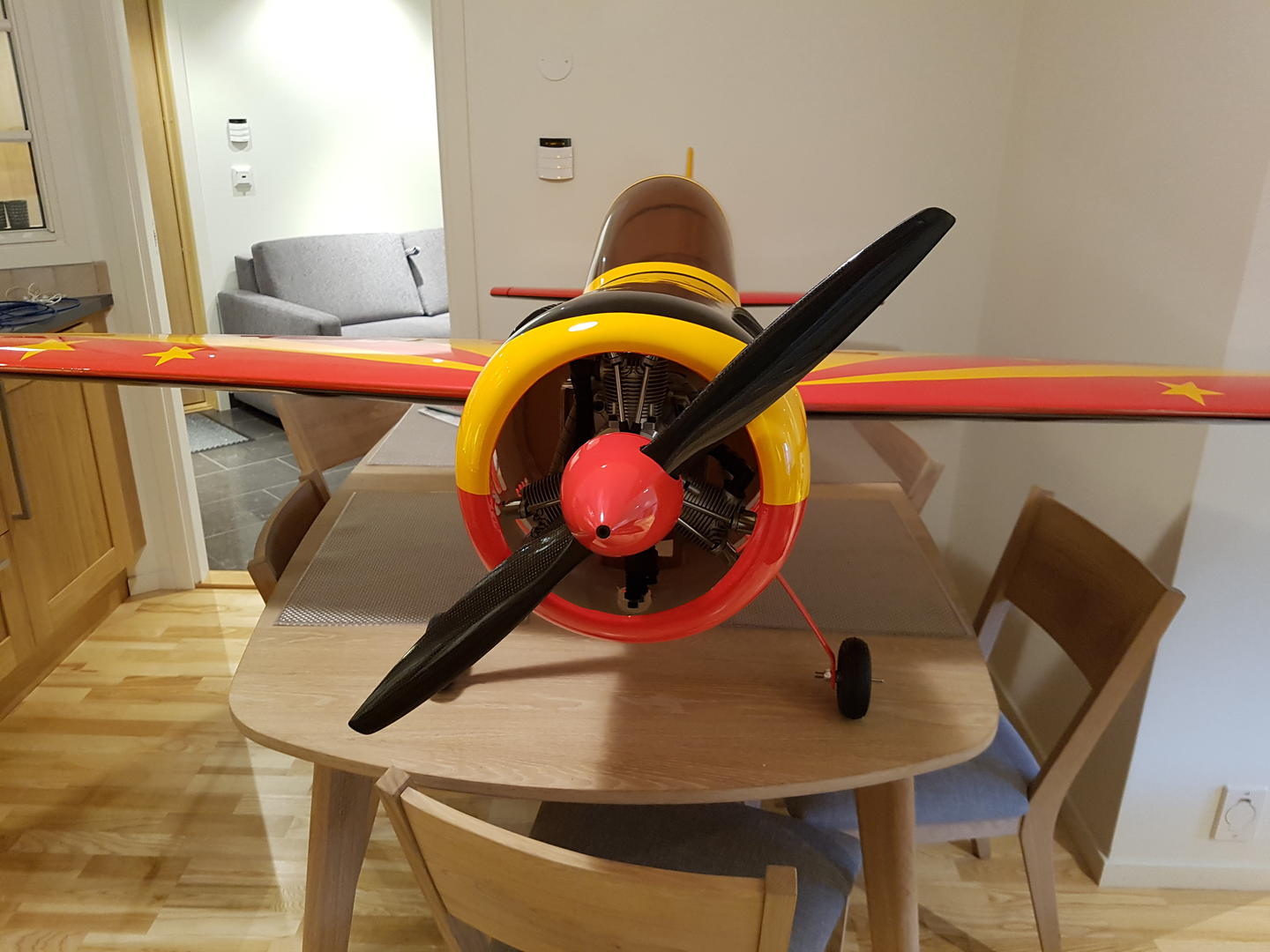 Men så kom jeg til å se på Saito sin FG-60R3 og begynte å spekulere i om den vil være sterk nokk til dette flyet.