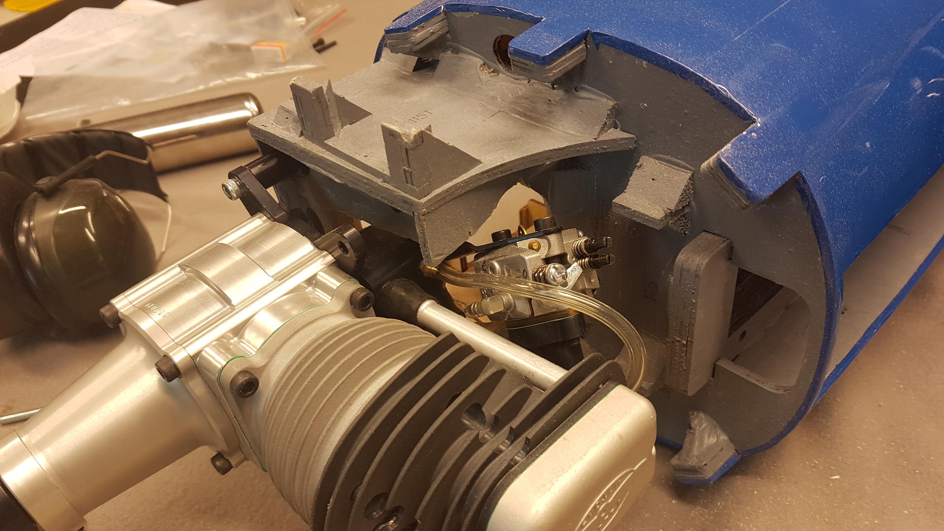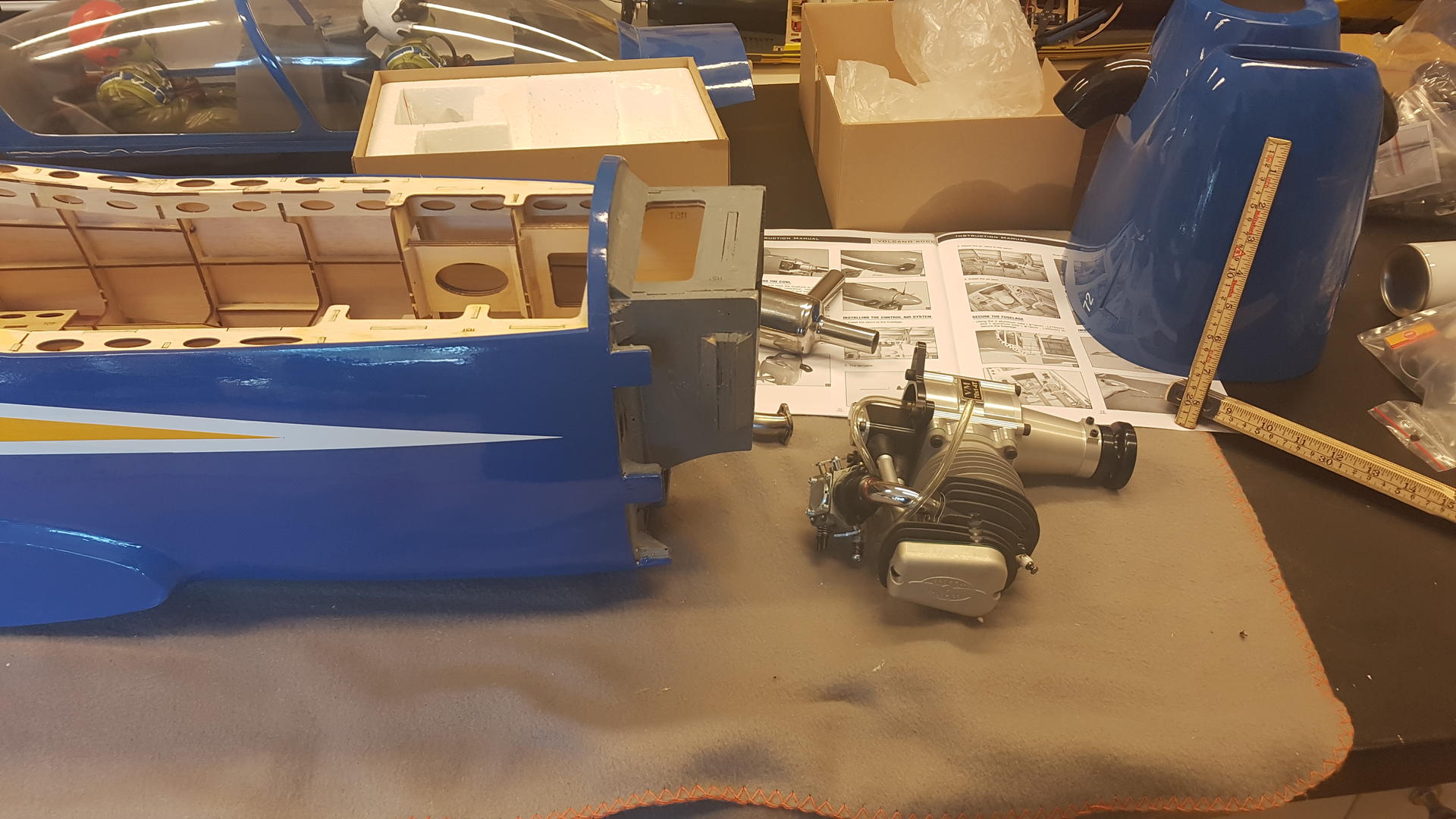 Frøste utfordring som jeg trenger litt tips rundt og det er valg av motor. Jeg visste at det var litt kronglete, men finner ikke en løsning jeg blir helt komfortabel med. Jeg ønsker å bygge modellen med bensinmotor for å få mest mulig flytid på den når jeg er på stripa. Tanken var å benytte en Valach 70VM som jeg kjøpte til denne, men den er for lang og jeg må bygge om firewallen ved å flytte den ganske mye bakover noe som er en stor jobb og jeg helst ville unngått.