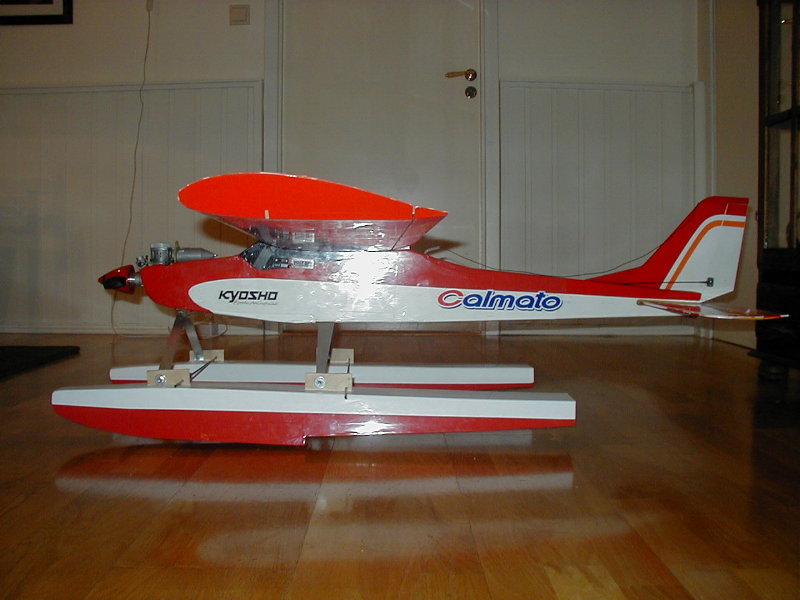 Bruker den selv nå i en Calmato på flottører med totalvekt på 3,5kg.