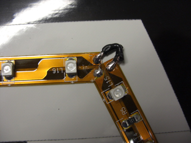 Videre oppdaget jeg noe fantastisk bra - man kan klippe opp lissa i ønsket lenge (3 og 3 dioder av gangen - merket på lissa med strek og loddepunkter) noe som gjør det meget enkelt å tilpasse.