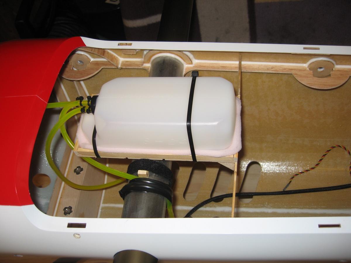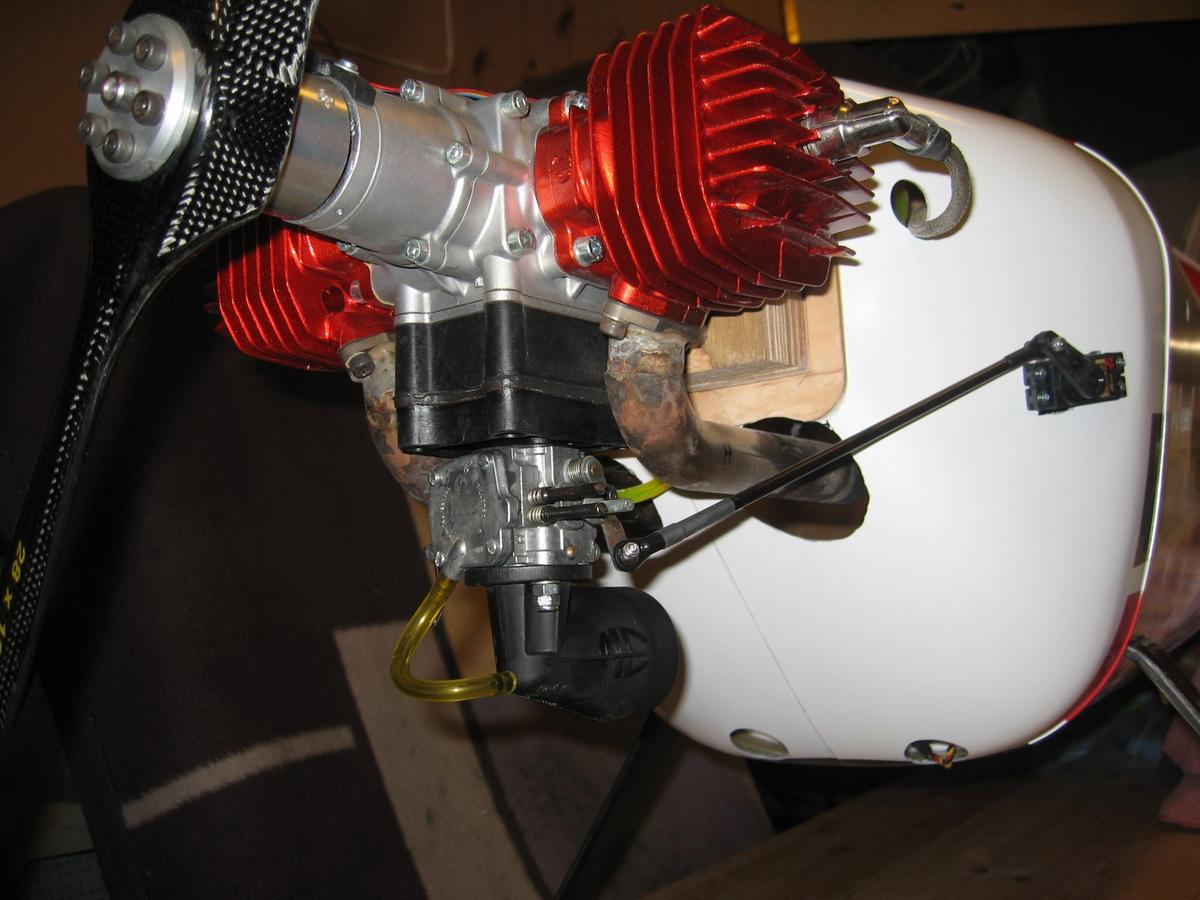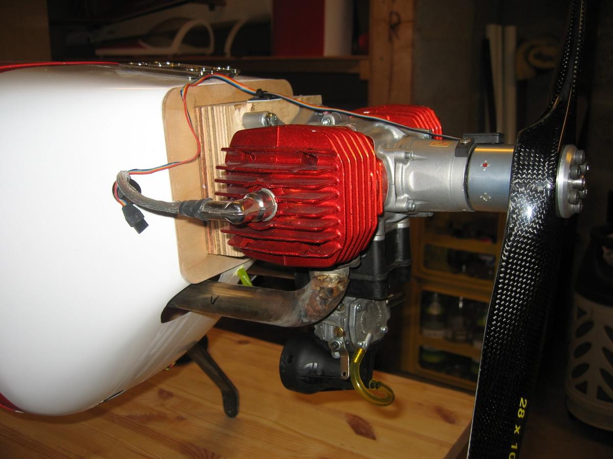 med 100ccm . Problemet er att med en større motor med en større propell så får