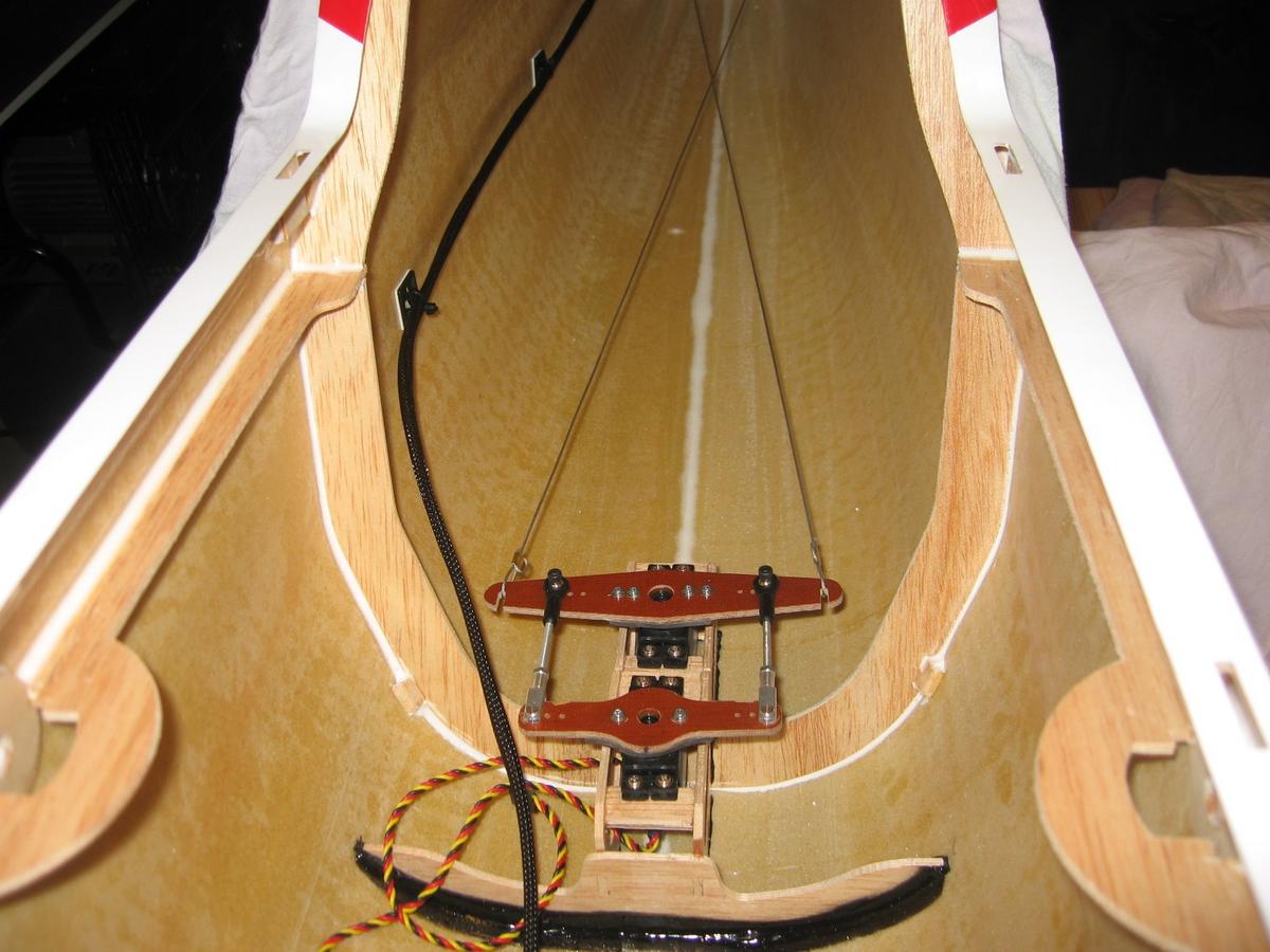 Kjempe flott denne maskinen syntes nå jeg! Har vært hos Geir Flesche og sett på den, kunne gjerne tenkt meg et eksemplar selv også! 1 servo pr. balanseror på denne holder mer enn nok med 7955 etter egne erfaringer på blant annet c-arf Yak 2,6 meter. Her bruker jeg bare 1 stk 5955 og balanseroret der er større også. Det holder i lange baner, selv med relativt høy fart og mye utslag...