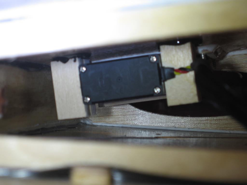 Lagde meg deretter 2 klosser av finner ca 2,5 x2.5 cm og ca 3 cm lange, når di var festet til servoen så var det klaring med ca 1mm til "huden".