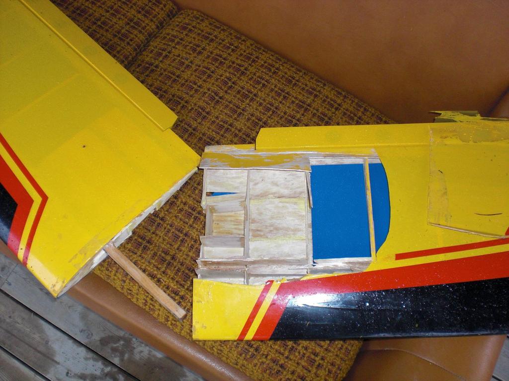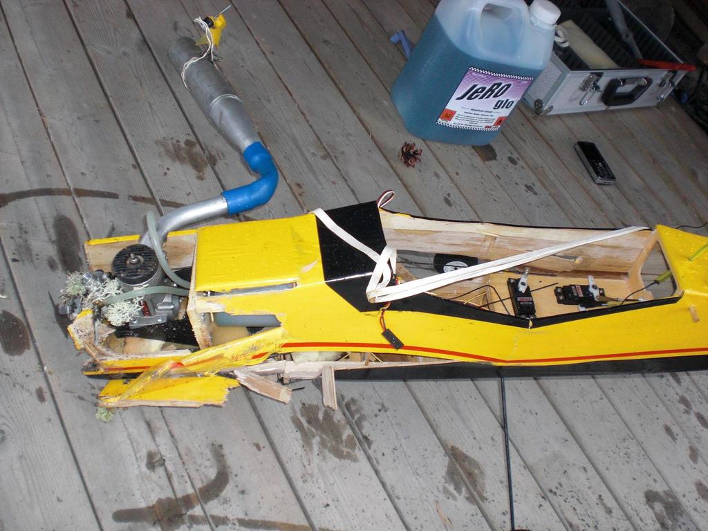 Har ikke fått tatt bilder før i dag og da var det for seint gitt fløy 3 turer med flyet og på tredje turen så knakk vingen i level flight. noe som selvfølgelig resulterte i knust kropp.