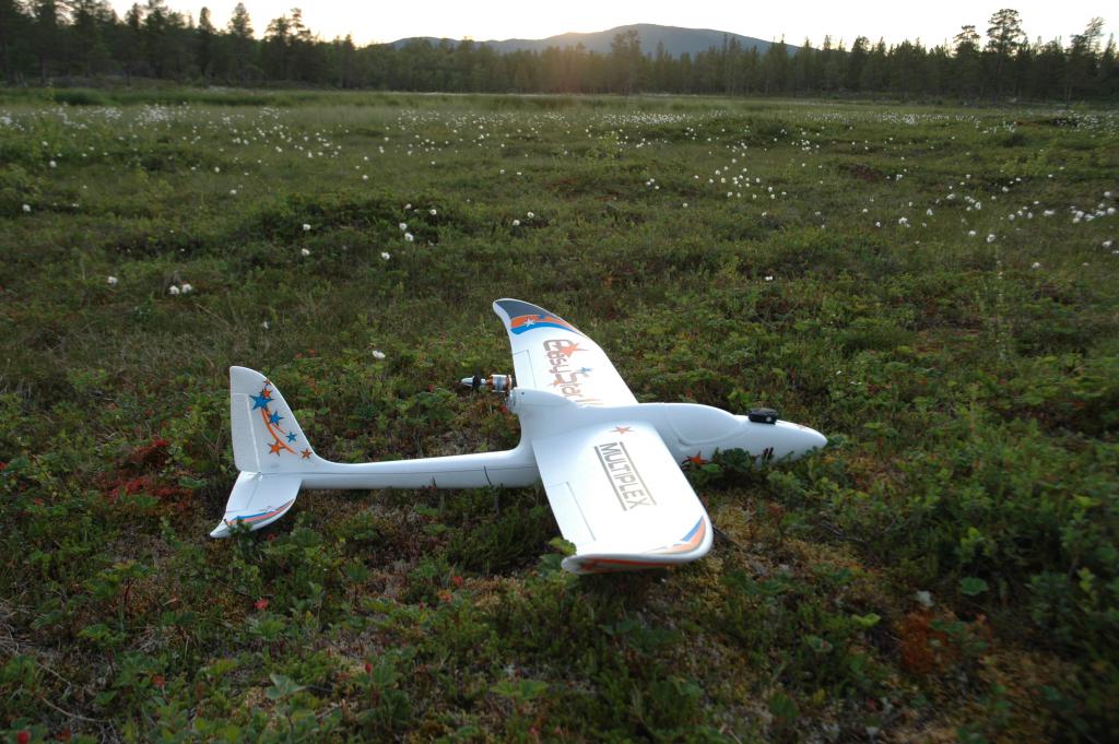 Videre så gled denne veldig bra når man kuttet power på motoren. Jeg fikk mange landinger som gikk litt langt forbi fordi den fløt så bra.