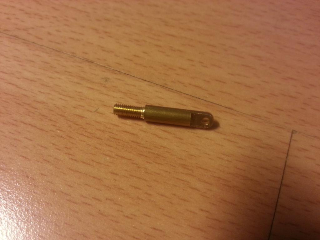 Hvis det haster (regner med at du skal ha den klar til HH) så er det bare å finne en messingstang og gjenge - file - bore.....