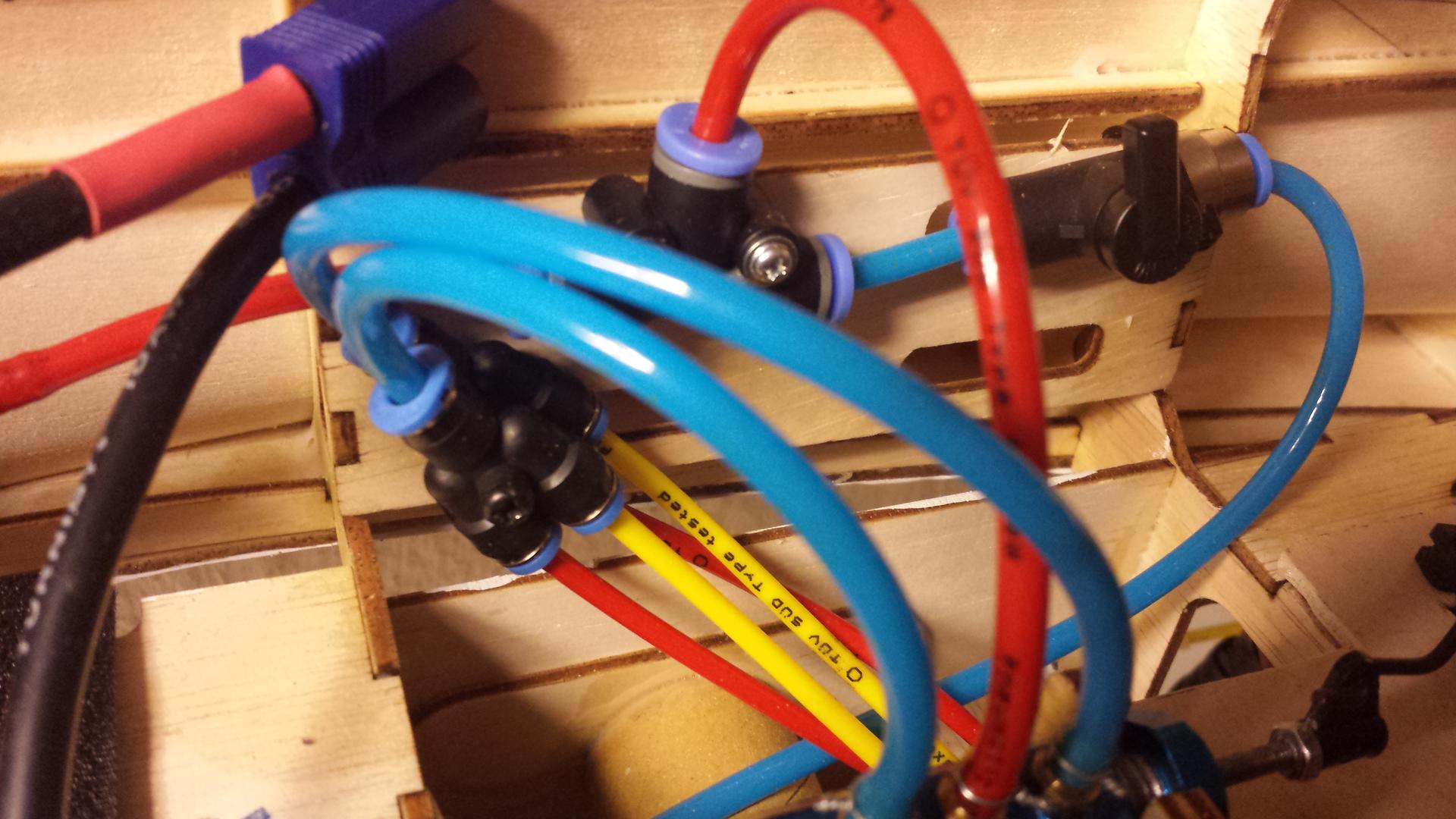 Har sikkert slanger med ståltråd, oppsettet mitt var for 4mm slage men hurtig koblinger for vinger fant jeg bare i 3mm så måtte ha overganger fra 4 til 3mm slange av festo type .