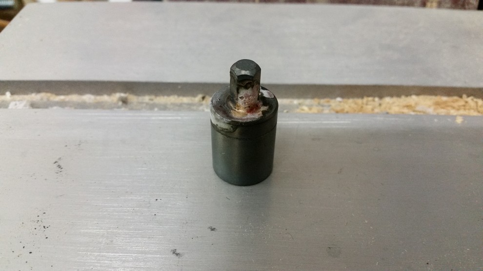 Tok derfor et bits, brukte en hammer og banket spissen på bitsen rett inn i 1/4 firkanten i pipa, det er trangt så det sitter bra mens man sølvlodder det sammen. Har man ikke mulighet til å sølvlodde så kan man sikkert bruke epoxy eller noe annet.