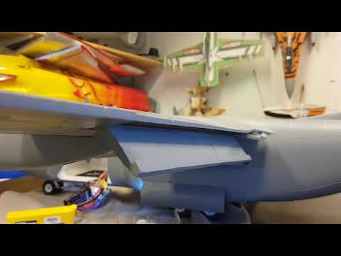 Da har jeg fått startet opp litt oppsett av denne modellen. Det meste fungerer bra men litt mekanisk justeringer må til, spesielt på flapsene. Det ene rorhornet på den indre flapsen var ødelagt og måtte erstattes, De ytre flapsene har elendige servoer og gir forskjellige utslag på senter posisjonen til trepunktsbryteren avhengig av fra hvilken side den vippes fra. De har også ingen holdekraft i forhold til de andre så de må byttes ut.