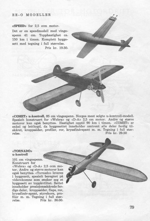 Må bare slenge meg på med litt fly-romantikk, siden jeg er en gammal gutt og fløy med linestyrt fly i årene 1966-1970. Flyet jeg begynte med var en Comet fra EEO som hadde en DA Drabant 2,5ccm i nesen. Senere kjøpte jeg en 2,5ccm Oliver Tiger som var en skikkelig råtass. Den brukte jeg i en EEO Competitor som var et ganske raskt fly.