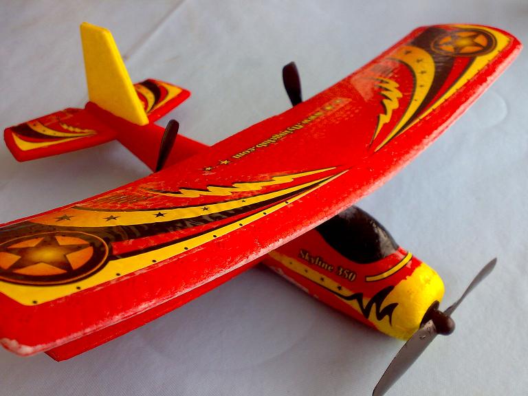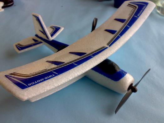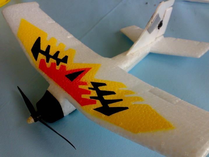 Et dobbeltvinget fly som kan brukes både innendørs og utendørs. Flyet er konstruert i fleksibel og robust EPP-plast som tåler mindre perfekte landinger. Takket være dobbeltvingene er flyet ekstra stabilt i luften. Den lave flyhastigheten gjør at flyet er ekstra lett å styre. Med 20-30 minutters oppladning av batteriet kan du fly ca. 10 minutter. Flyet finnes i to frekvenser (27 og 40 MHz) med tre underfrekvenser (27A, 27B osv.), så opptil seks fly kan brukes samtidig (forutsatt at alle har fly med forskjellige frekvenser og underfrekvenser). Rekkevidde ca. 80 m. Vingespenn 239 mm. Vekt 20 g (inkludert batteri). Leveres med oppladbart batteri, sender (drives med 6 stk. R6-batterier), samt bruksanvisning med nyttige råd både for nybegynnere og erfarne brukere.