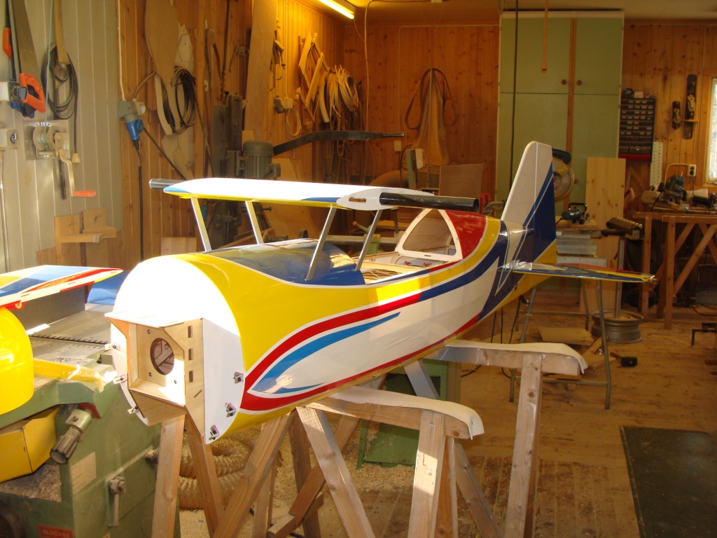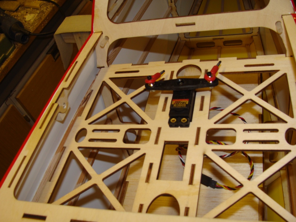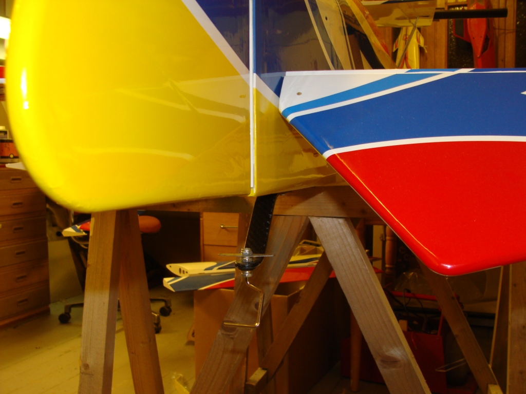 hei. hengslet og montert sideror og høyderor. fort gjort!! satt på midt-delen på øvre vinge og montert sideror-servo(+halehjulsfeste). ikke så bra bilder men... kan ta noen bedre i morgen.