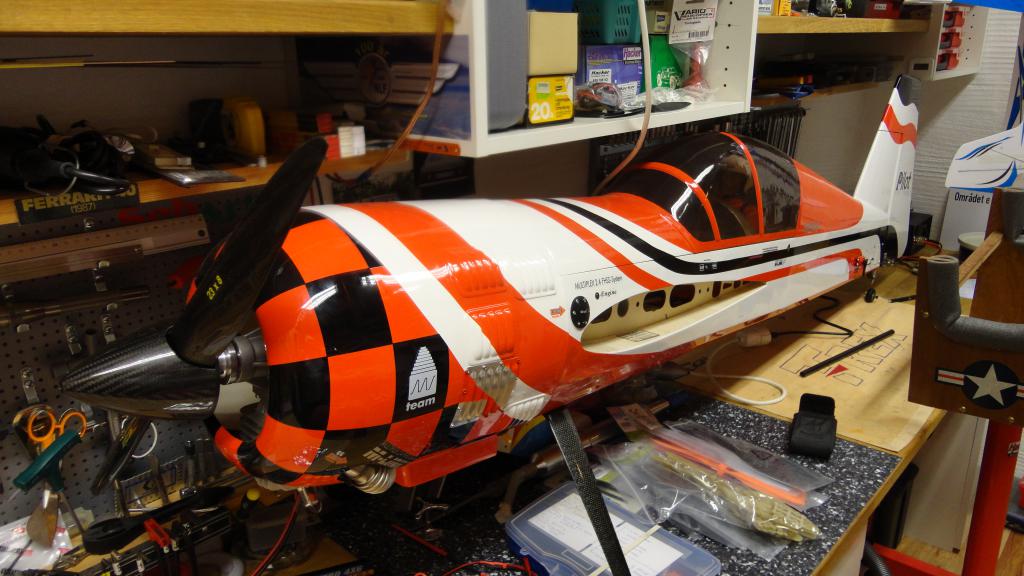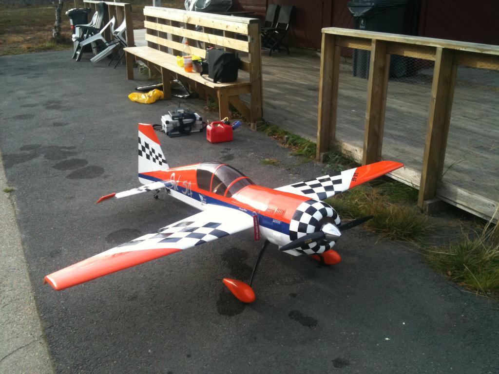 Dette blir spennende he he, som du ser på et av bildene har jeg montert ett alucover. Det ble ikke bra så jeg holder på å male det slik at det ikke synes så godt. Problemet er som du er inne på -det er litt for stort. Vet ikke om det er nødvendig for luftinga sin del egentlig, har en SD yak-54 også, DLE55, på den har jeg ingen ekstra lufting annet enn under og bak i kroppen, har heller ikke brukt bafleplata i snuten (synes det ikke ser bra ut), og har ikke hatt problemer med varmgang. Snitt temp i Tromsø er dog ca 11 grader om sommern, så det har kanskje litt å si.