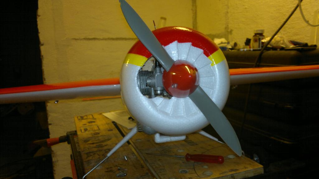 Måtte slå ned noen vegger innvendig for og få batteri helt frem til motorfeste, samt liten ballast inni cowling, pga CG.