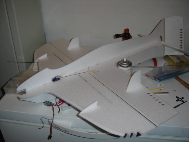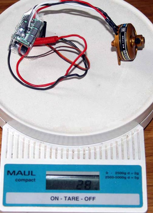 På kroppen gjennstår kun bittelitt depron og vekta NÅ stopper på 59gr. Hvis jeg slanker elektronikk noe så burde jeg klare å ende på ca 160-170gr.