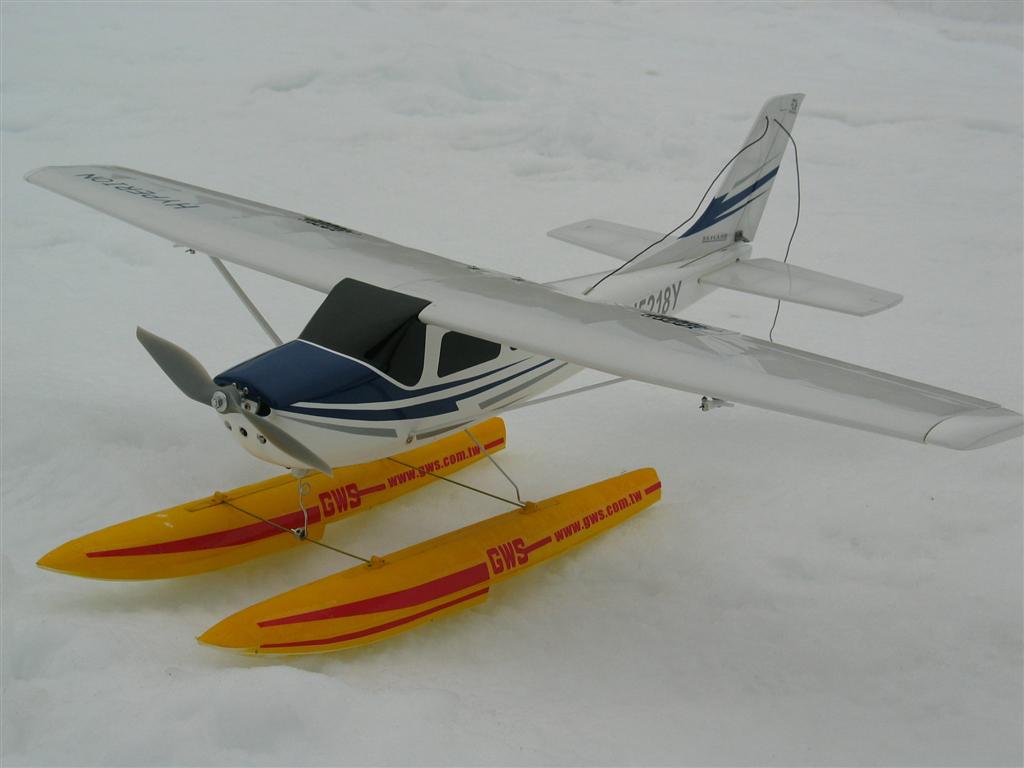 Du trenger ikke å gjøre om festene, de passer rett på. Eneste er å ta av tverrstanga fremst mellom de 2 flottørene å tre innpå en hjulstopper slik att du får feste neseleggen på tverrstanga på flottørfeste. Litt bending måtte til der men ingen problemer. Merker att understellet på cessnaen er mykere enn på e-starteren..............