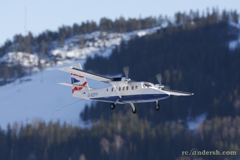 Jeg har hatt denne modellen lenge, men for en stund tilbake skulle jeg bare ta en runde til.... Det gikk ikke så bra. Men, en Twin Otter må jeg ha i hangaren, så etter en dags søk på nettet ble ny bestillt fra en nettsjappe i Tyskland. Min forrige TO hadde jeg i det opprinnelige British Airways skjemaet, men denne gangen skulle den gjenppstå i "norsk drakt"