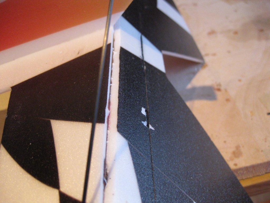 skal bruke de "ovale" depronbitene som følger med som skal limes inn på karbonstengene som er understellet.