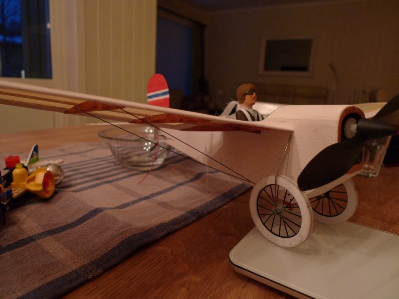 Det jeg ikke fikk til skikkelig med balsa bygde fly var trekkinga. Jeg greidde