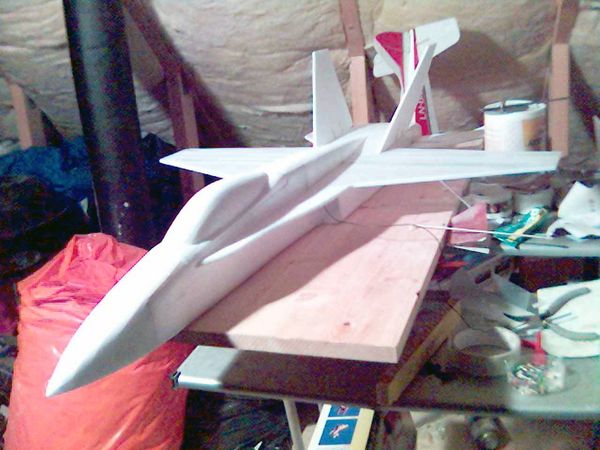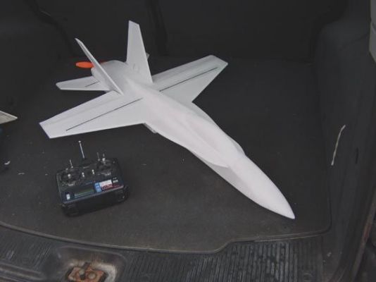 Etter å ha fulgt med en byggetråd på rcgroups har jeg bygget en F/A-18 Hornet i depron. Tegningen kan lastes ned gratis(!) fra www.3dfoamy.com