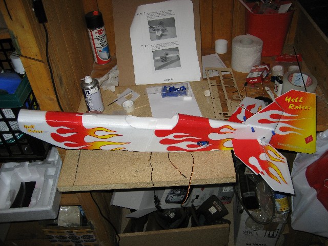 Den blir satt opp med axi-motor, hitec electron mottaker og hitec 55 servoer.