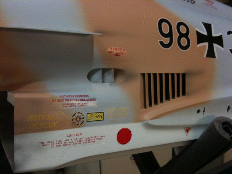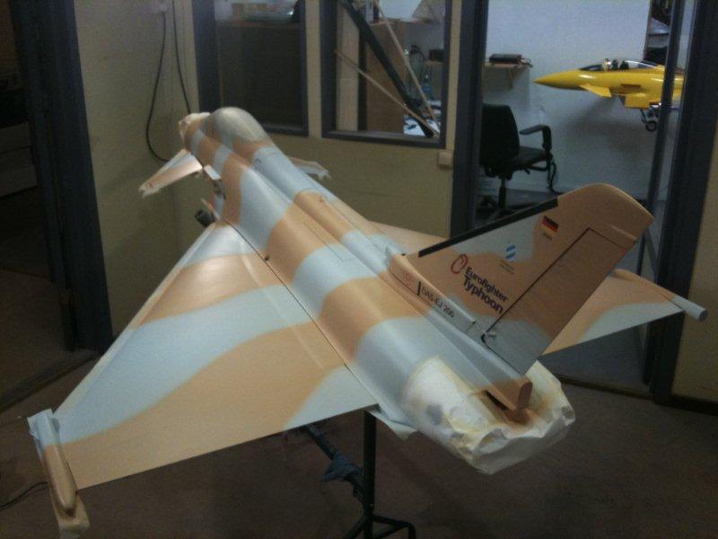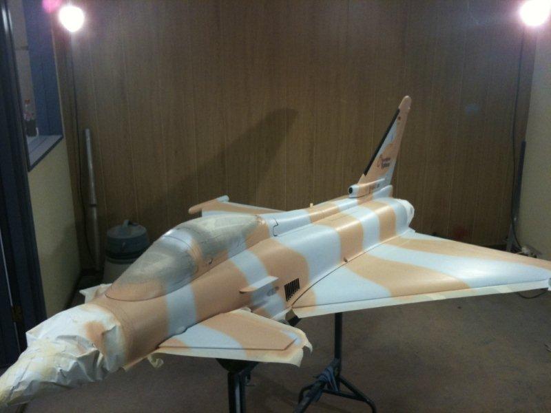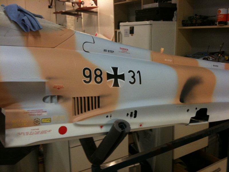 Etter at jeg fikk øye på Thomas sin MB 339 i sand kamo, bestemte jeg meg for at jeg ville lage noe i denne duren. Det ble da Aggressor sand kamo grå og lysebrun med tyske kjennemerker. Grunnen til at jeg ikke valgte et fullskala skjema er at Eurofighteren enten er grå, svart eller i noe orange greier som ikke er fint i det heletatt syns jeg. Jeg trenger å se flyet godt og da er verken svart eller grått noe for meg.