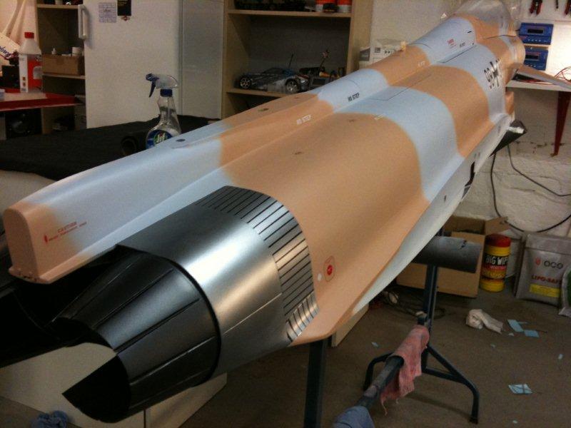 Det tok litt tid å male alt dette med paintbrush, jeg ville jo ikke ha skarpe lakk overganger og resultatet ble jeg veldig fornøyd med om jeg må si det selv Gikk over å møkka til litt med paintbrushen i etterkant. Spesielt soten oppover siden på flyet fra APU`n (tror jeg det heter) det er ihvertfall den som starter jetmotorene på orginalen og denne soten måtte jeg også ha.