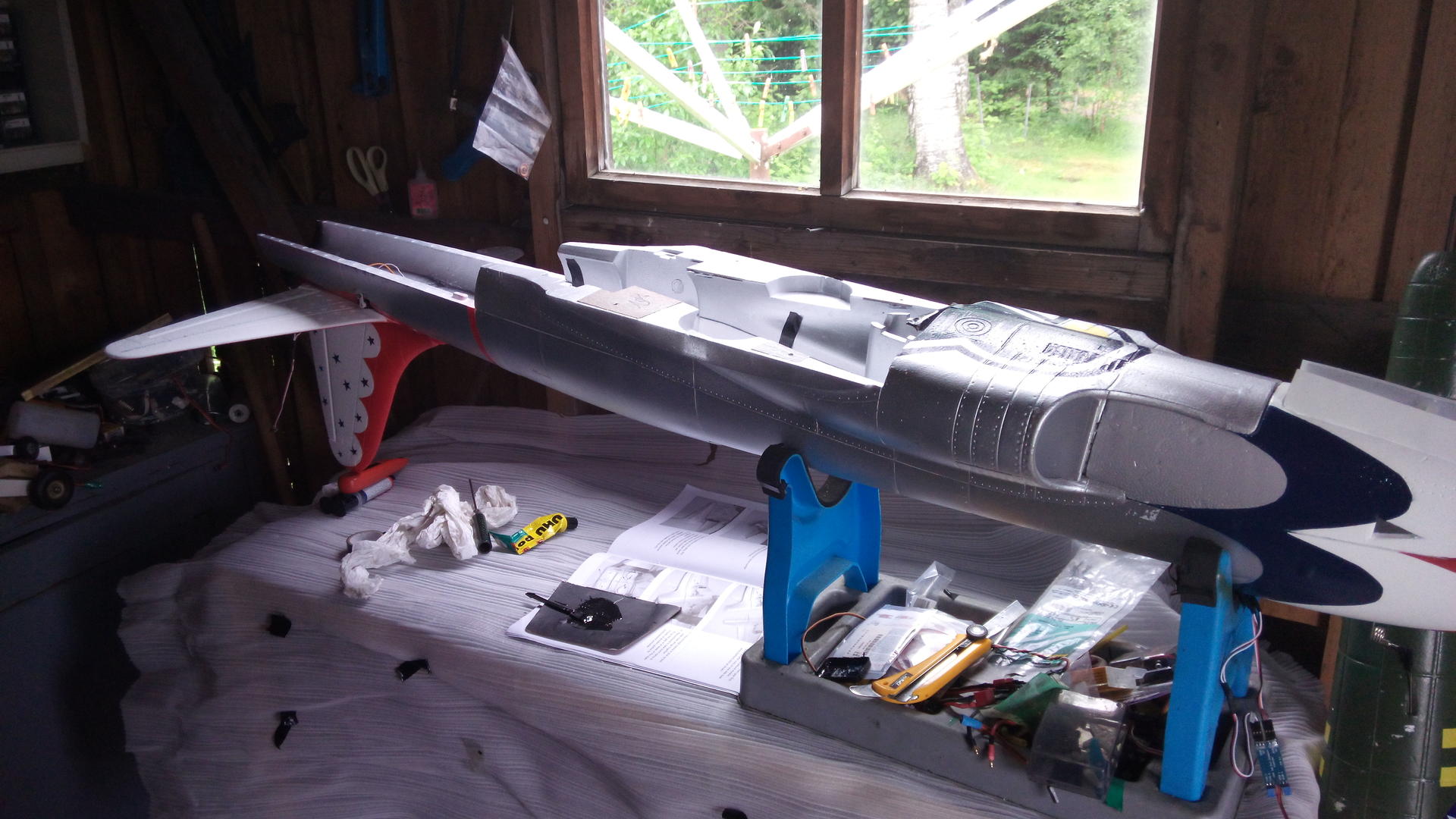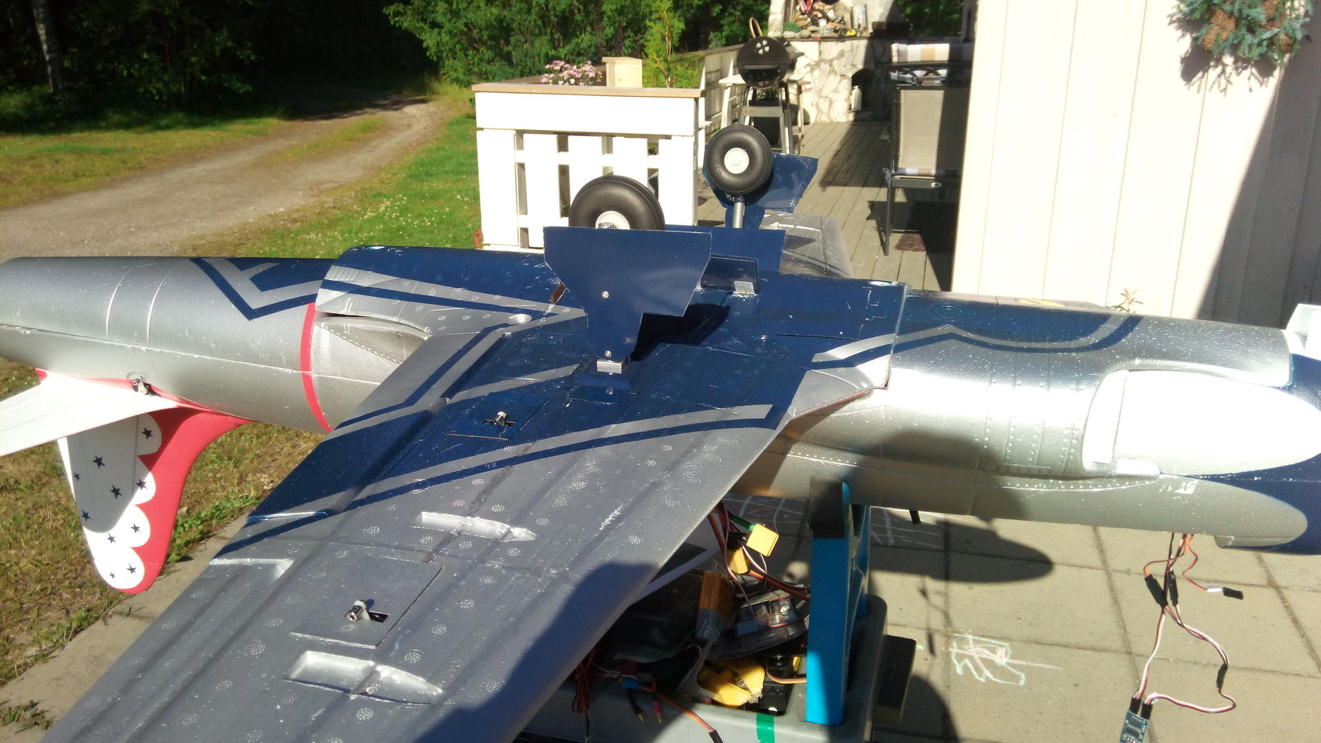Gav opp en komposit E-flite F-86 med skala luft inntak (solgt)! Den ble altfor tung selv strippet til beinet.