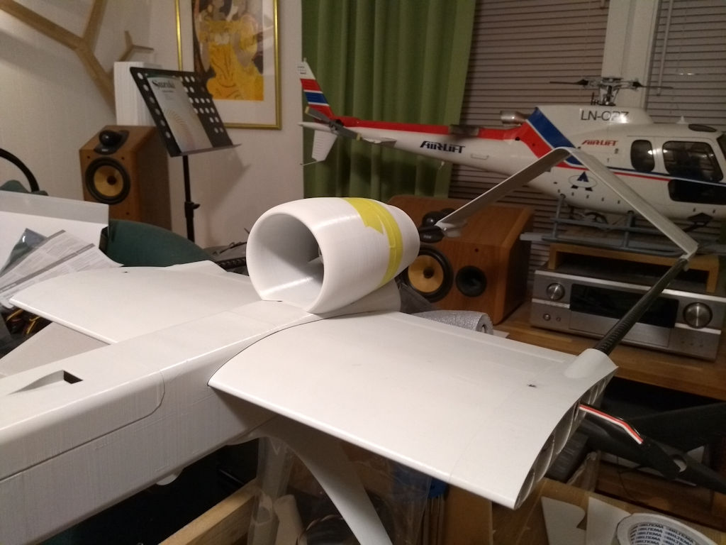 Har designet EDF-modul til mitt 3D-printede seilfly, så da kan jeg starte tråd her med god samvittighet. Flyet har forskjellige varianter av vingetipper og haler, med V-hale og fuglefjær som alternativ. Nesa finnes også i mange varianter, med nebb, kamerafester, eller vanlig nese. EDF-modulen passer rett oppå kroppen med en hake i motorluka og festes med to skruer bak. Jeg skal prøve flyet så snart jeg får mulighet til å fly det.