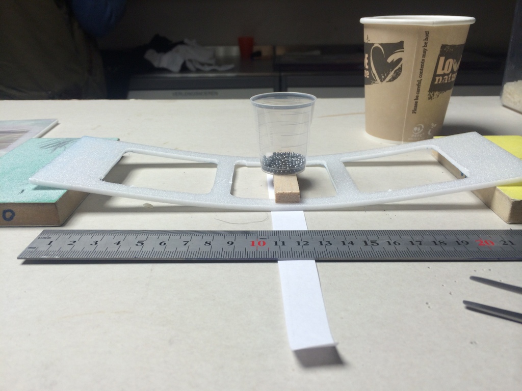 - Å teste elastisitet er litt mer krevende. Belastingene under flyging er først og fremst lodrett på overflate, og menge med forsterkninger som trengs er abhengig av stivheten i vinge, hale etc.