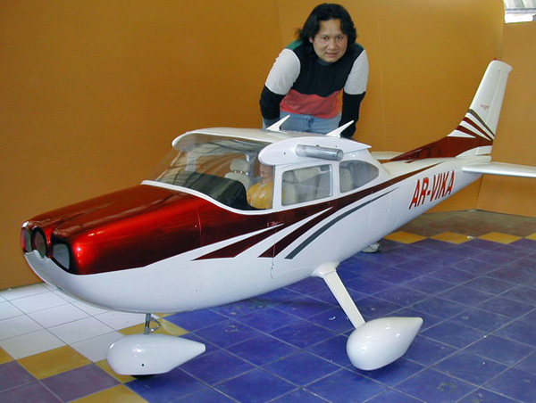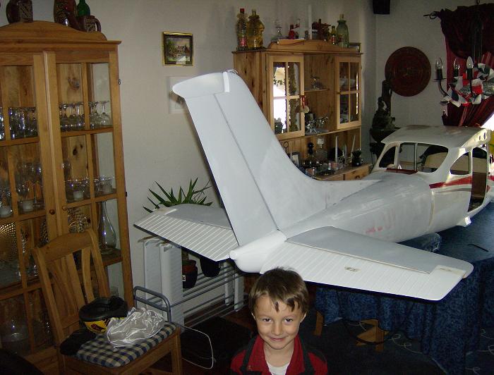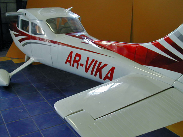 Tenkte jeg skulle vise en relativt stor Cessna 182 Skylane vi har fått bygd for en kunde. Modellen er i skala 1:3 og har vingespenn på 385cm, lengde 310cm, vekt ca. 22kg og et vingeareal på 5.67 m2. Cessnaen er bygd i glassfiber kompositt, kompl. med alle panellinjer og nagler, skala lysanlegg og fullt cockpitinteriør. Vingen er i tre seksjoner og kroppen i to. Motor blir en 150ccm tysk 4-sylindret, 4-takts boxer bensinmotor som også er skala..
