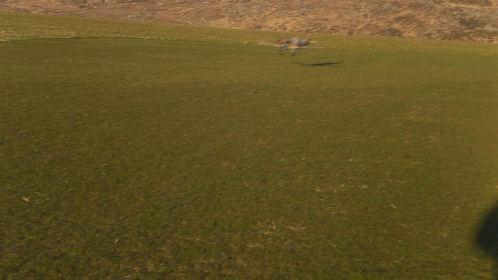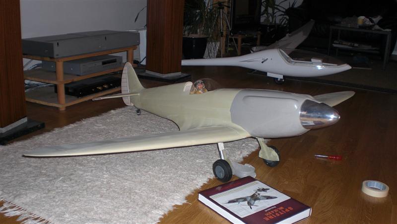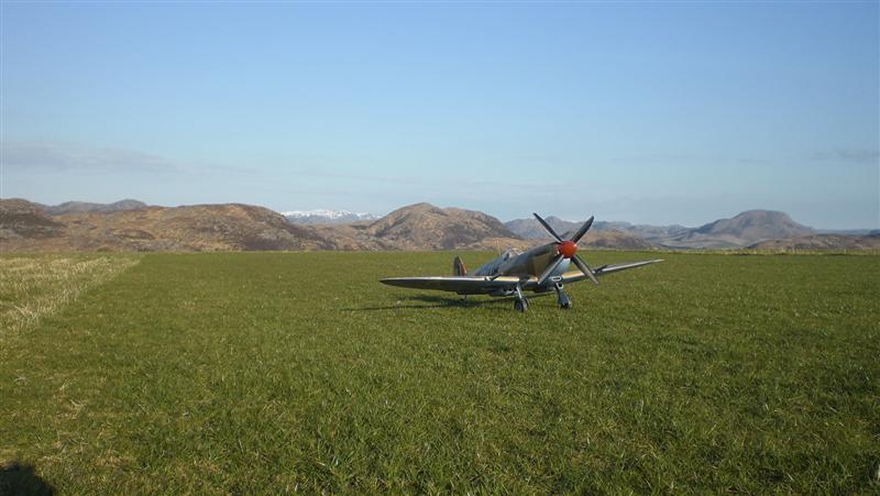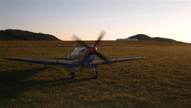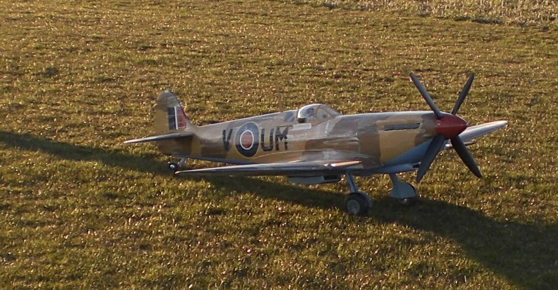 Klassisk spitfire etter min erfaring... den neser over for minste lille ting. Man må starte med fullt høyderor, men ikke ta av med fullt!Legg også merke til sideroret... Hjulene triller på kulelager, så du må nok forvente litt "kos" med din også