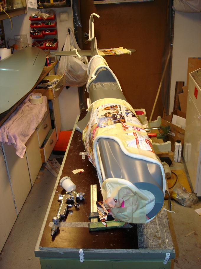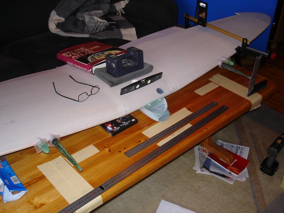 --Begynte med vinge, den er oppbygd av isopor som er ferdig "balsamert", fikk også med med de flaplukene som er inn under kroppen.