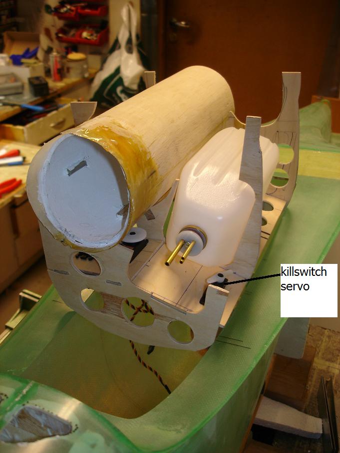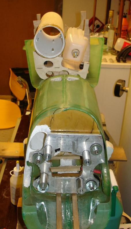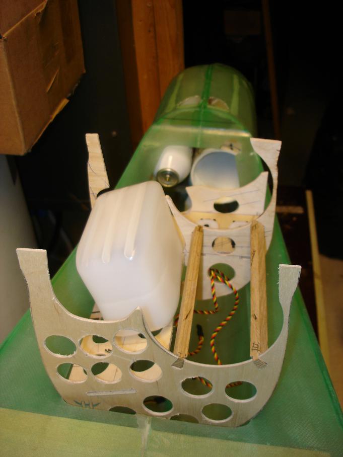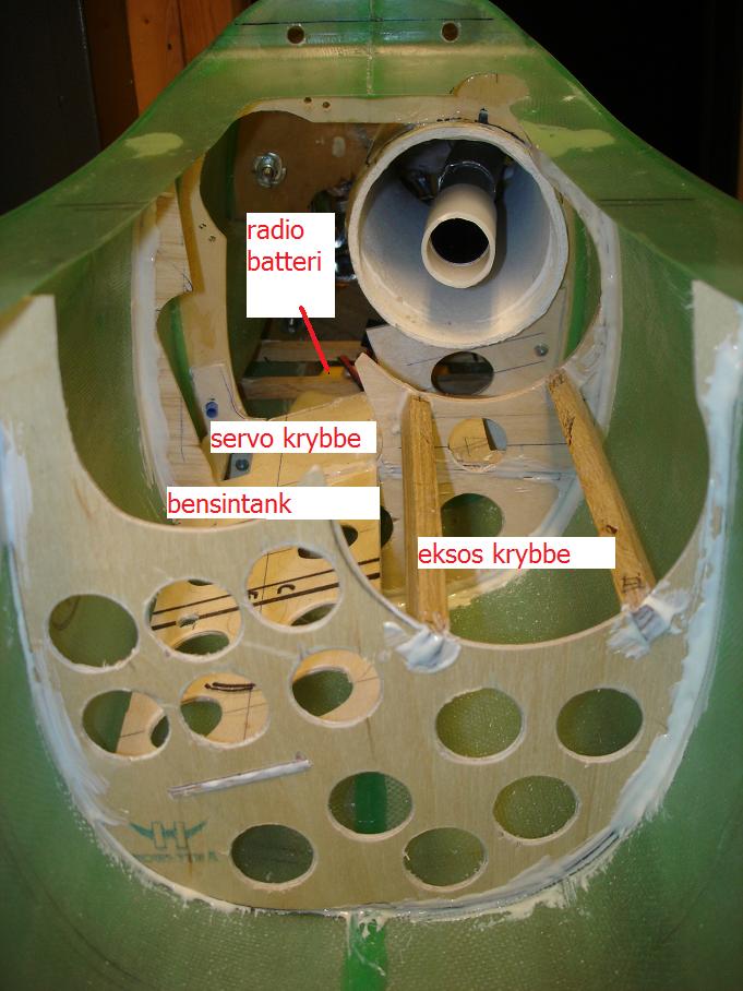 Lagde så en krybbe forinnredning med plass for servoer, bensintank og ikke minst en tunnel for canisterpotta.