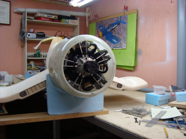 Mellom alle fly, helikoptere og prosjekter, står Corsairen der fortsatt, ferdigbygd en gang av en eller annen, med alle servoer på plass og fungerende retract både fore and aft og fortsatt uten motor. Jeg har det forsåvidt ikke travelt, men det ergrer meg at Moki150 er 1-1,5 cm for stor i diameteren for å passe inn i cowlen. Dyr er den og. Saito 450 har bare tre sylindre, greit nok, men ikke helt! Så kjenner jeg noen som lovpriser ASP. ASP/Magnum har 65cc og vet ikke hva den sies å yte i hp. Andre sier ASP/MAGNUM? Huff huff, styr unna, grøss! Ikke godt å vite hva man skal tro. Men så kommer det store spørsmålet. Seidel , ST-7-70, 7-sylindret, 4 hester(!) går på metanol, det synes jeg er greit nok og motoren er innenfor (et kommende ) budsjett. Den er anbefalt fra produsenten med f.eks. en treblad 22X8 med flyvekt inntil 14kg. En jeg kjenner i Sverige med samme flyet ble frarådet å bruke den. Mitt fly veier ujten motor 12 kg. Motoren veier 2,6kg. Da nærmer vi oss med tank og det hele15kg. Nå har jeg ikke planer om noe akro med Corsairen. Vil Seidelmotoren kunne fungere rimelig greit? Denne Seidelmotoren med 70cc har oppgitt langt lavere hester enn tilsvarende. Har de andre juksehester?