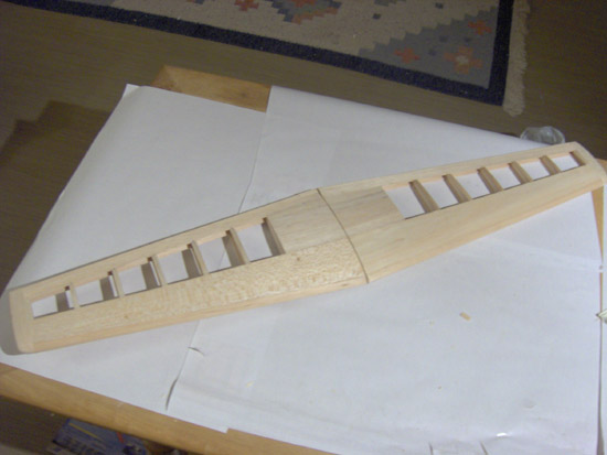 men da må jeg nok ha en servo i hver vinge. så jeg har begynt å lage nytt servofeste i vinga også..
