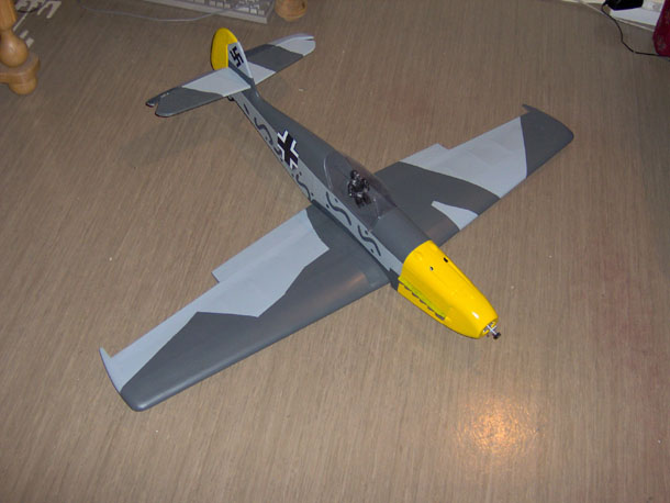 Nå har jeg fått lagd halehjul bak som er festet i sideroret slik at jeg har litt å svinge med på bakken og har å lakka sideror og nesa gul...brukte en Tamiya lakk til plast, men rant veldi fort på filmen som flyet er trekt med, så det ble ikke det beste, men lakken satt fint på plastikken som er på nesa..... får ta det med penselen som ikke ble bra ved den siste finsihen senere
