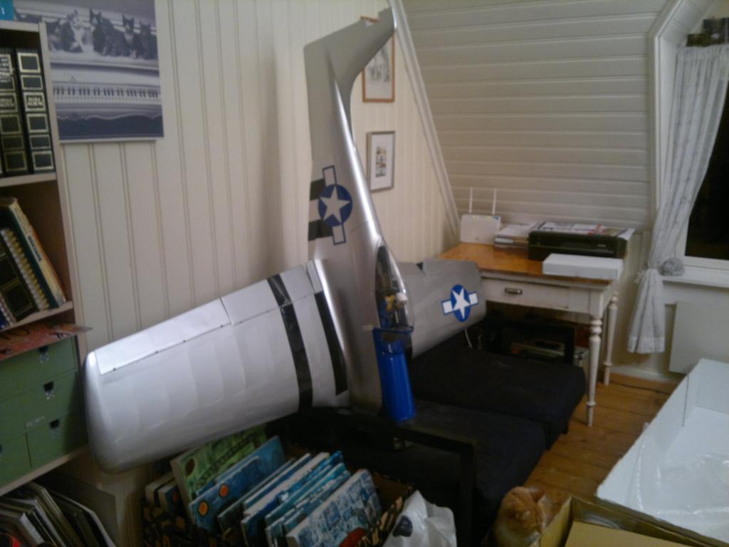 Jeg henta flyet på posten i ettermiddag, og har bare fått kikka litt i eska og prøvemontert med vinger osv ikveld. Synes det ser veldig bra ut sålangt. Flyet er så og si ferdig. Den kommer med ferdig hengslete ror. Sideroret er avtagbart med en pianotråd man trer igjennom. Hele flyet er trekt i oracover film som er veldig sterk og bra. Den kommer med fjærende retract til hoved og halehjul med hjulluker osv. Har lest litt om dette understellet og har ikke funnet noe negativ. Eneste er at man må skru fra hverandre hele understellet og bruke locktite på skruer osv. Følger også med dropptanker. Cockpiten er ferdig malt og det følger med pilot, men denne kommer jeg nok til å bytte. Spinner følger også med. Veldig mye fly for pengene her altså. Blir artig å sammenligne den med aeroworks Mustangen som er i samme størrelse.