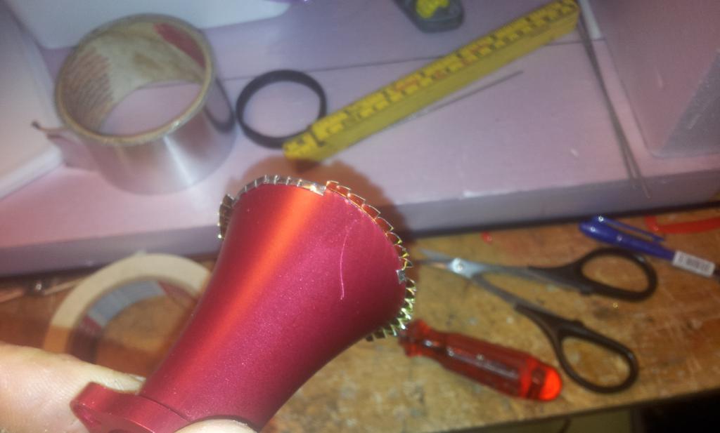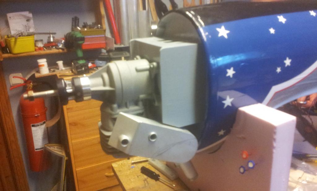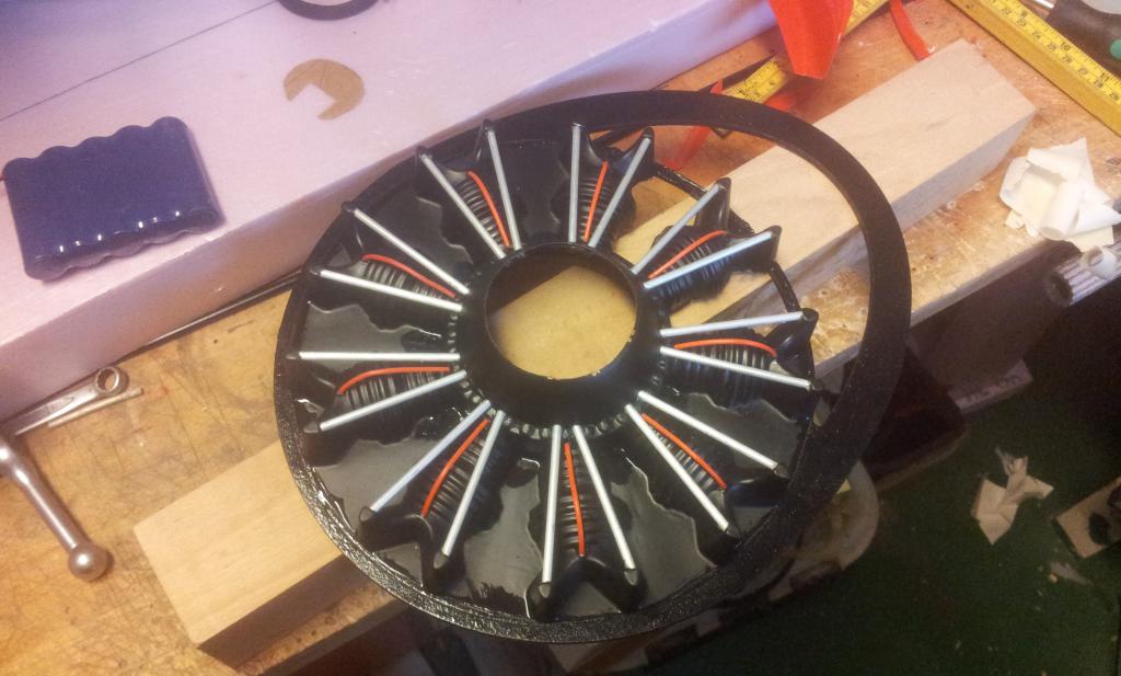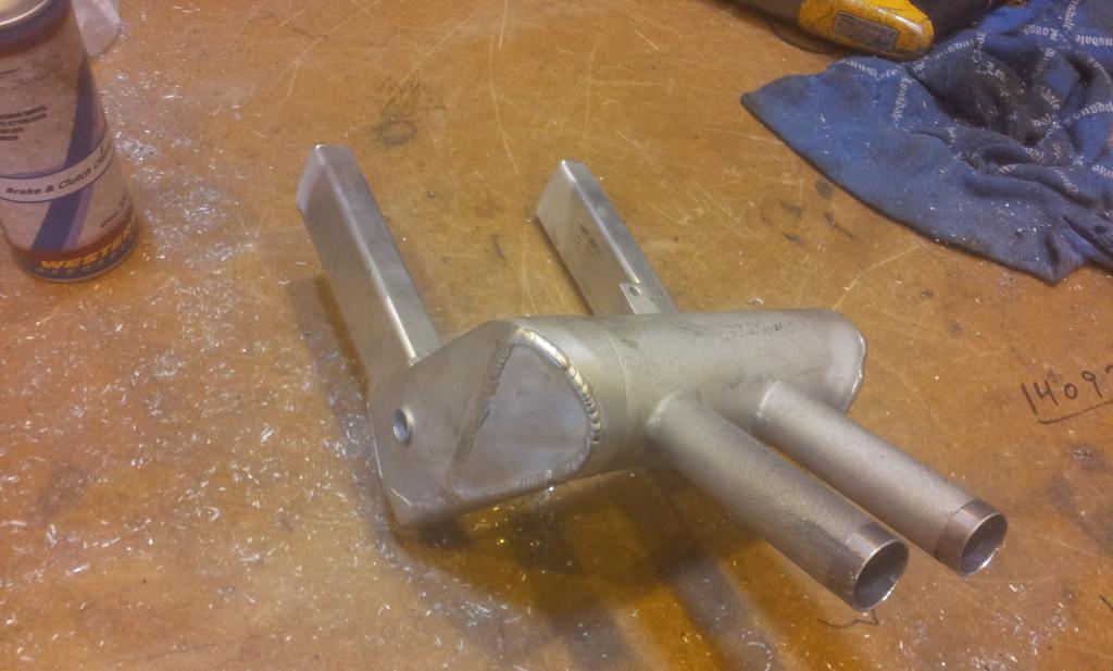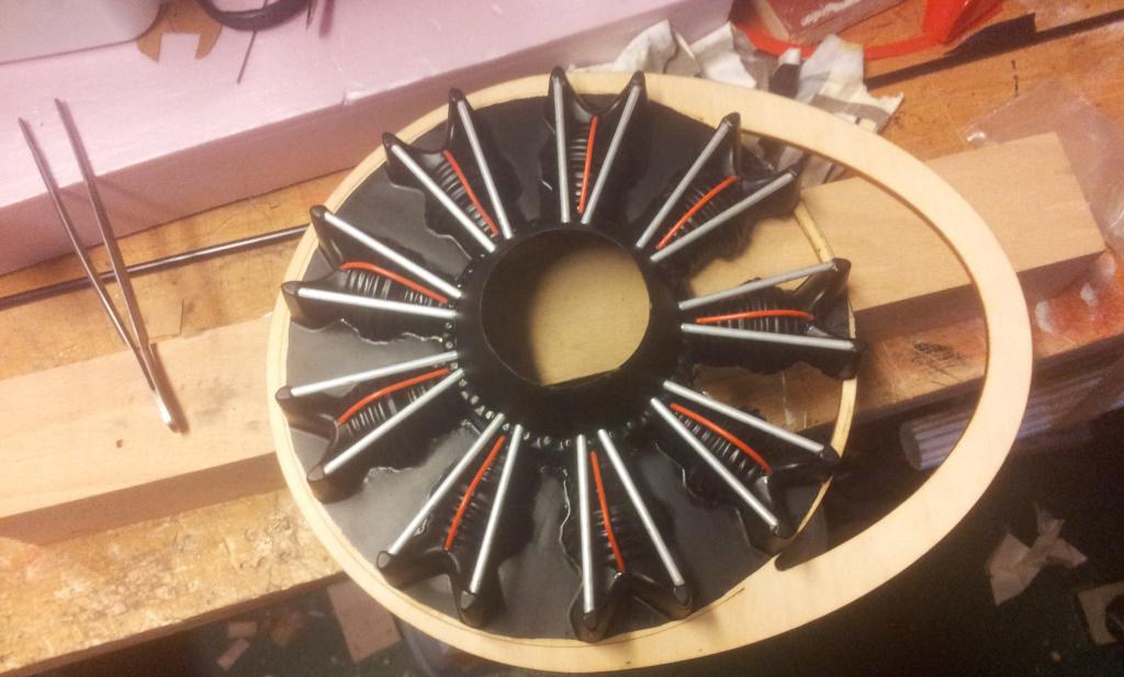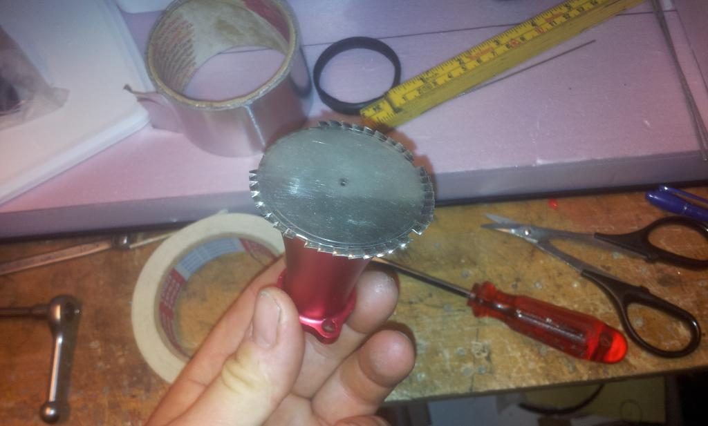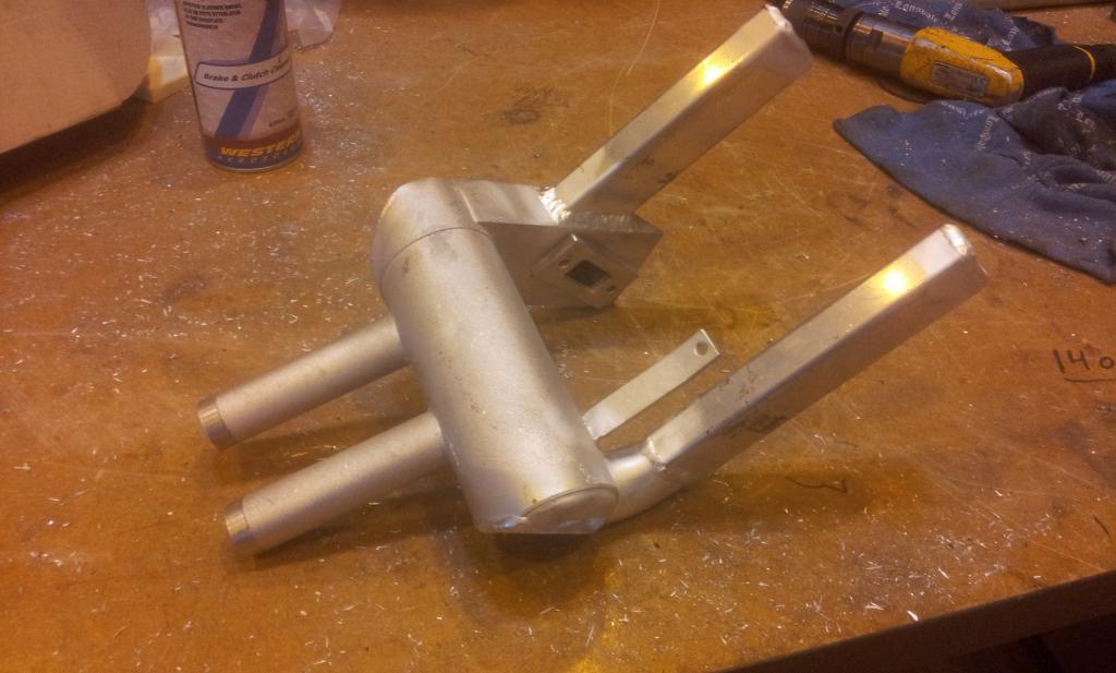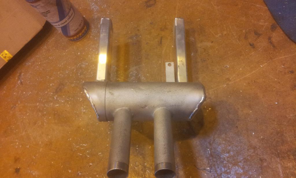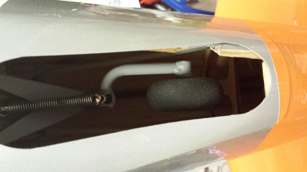 Det som er gjort er at vi byttet ut den orginale akslingen med en som har en 90' bøy som vi skar et spor i for å feste fjøra i,