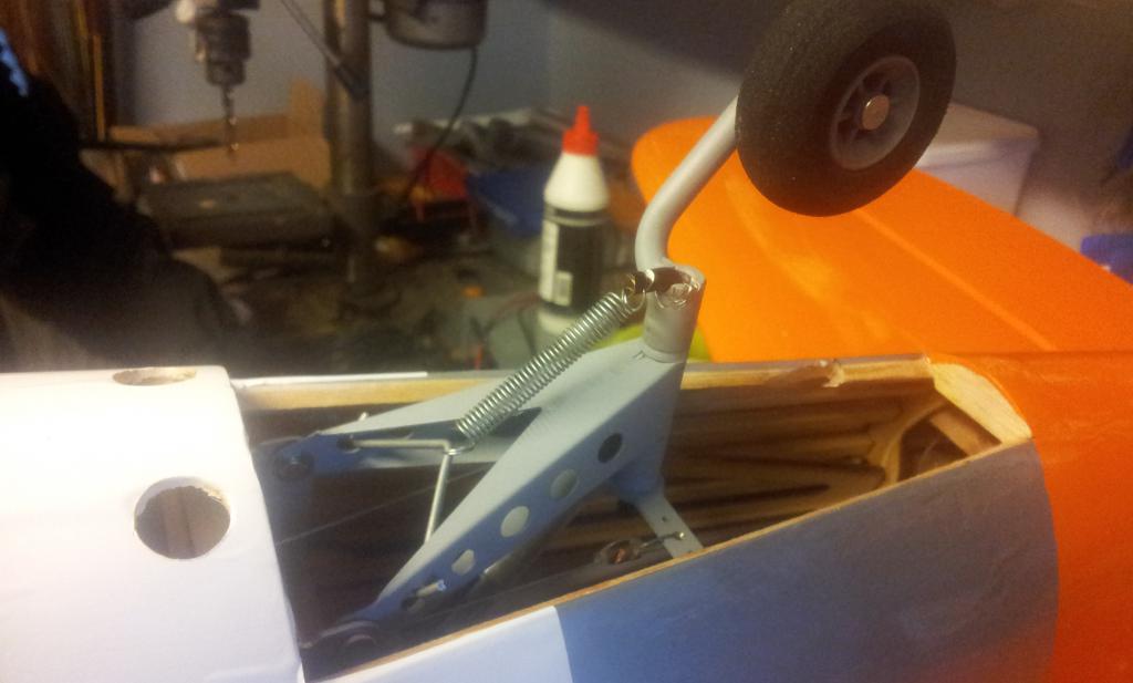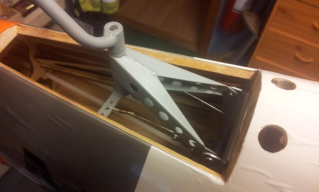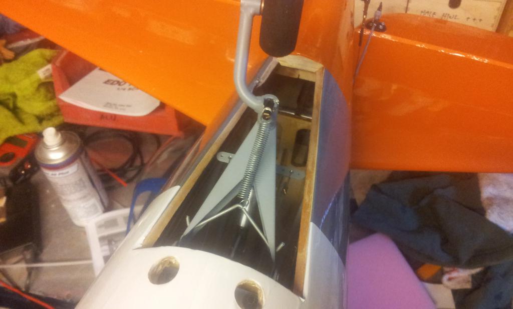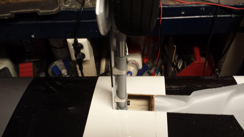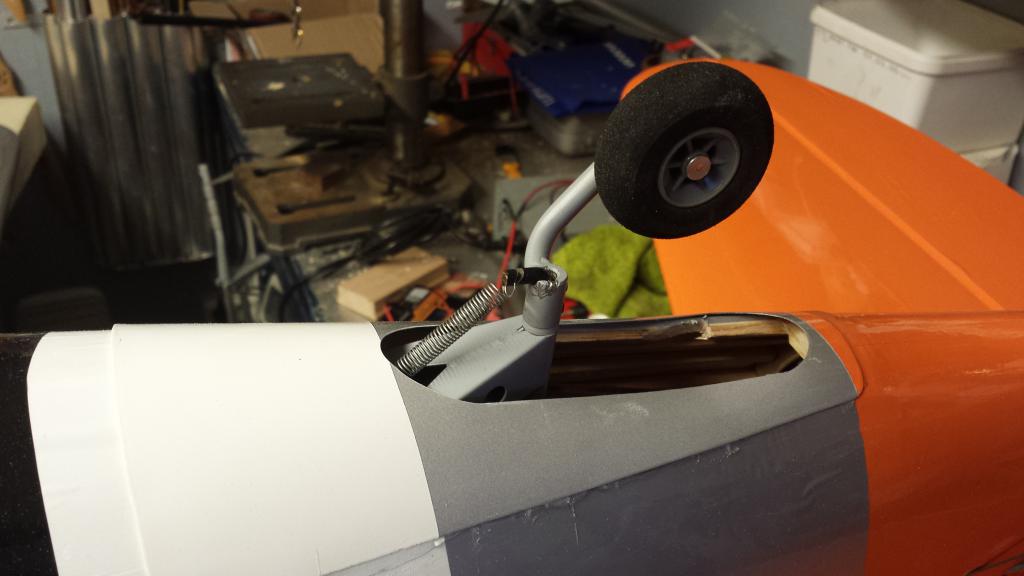 I denne modellen setter vi inn robart sitt halehjul. Et STORT minus med disse er at det ikke er noe som holder det i senter før vaieren blir stram når hjulet er ute. Eieren Hans Georg å jeg måtte finne en løsning på dette.