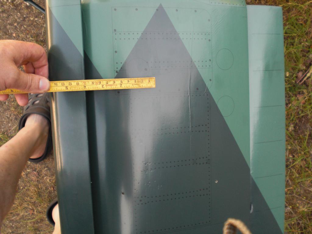 Kikket på hvor tyngdepunktet er på tegninga til svensson storchen i forhold, og da så det ut som om de har tatt hele corden fra forran slatsen til bak flapsen og delt på 3. gjorde det samme på denne og havnet da på 12.5cm. Så da har de nok lagt det litt forran det for å være sikre de som har laget den