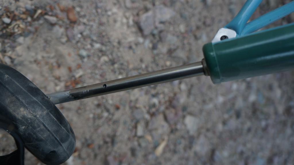Fikk fikset understellet. Demonterte det og dro ut selve støtdempersaken. og der var det en løs skrue inni ja. Utrolig dumt laget, for skruen kan ikke skrus helt fast for da vil det ikke bevege seg. Vietnameseren som har skrudd sammen dette har nok glemt locktiten i farten Men nå er den satt på plass med grønn locktite på gjengene, så da får vi håpe att det sitter