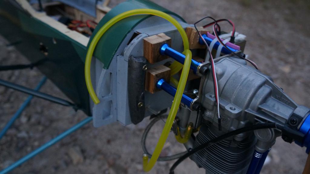 Ble en del bly for å ballansere den. 3 store klumper måtte til, ca700gram Men da er den ikke baktung i hvertfall Tenkte nå er alt i orden til maiden. men skulle sette på cocpiten og oppdaget att den ikke gikk ordentlig på plass pga. Tanken. Som er montert etter manualen hehe. Er ikke alverden å flytte litt på den da den er bare stripset fast.