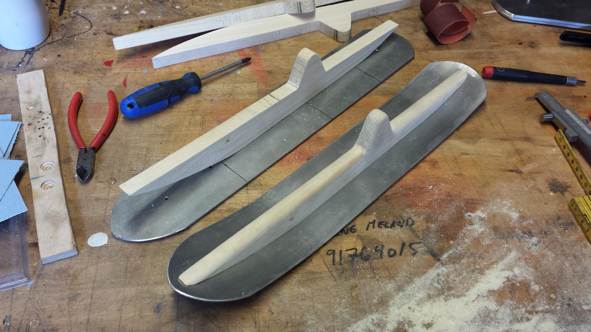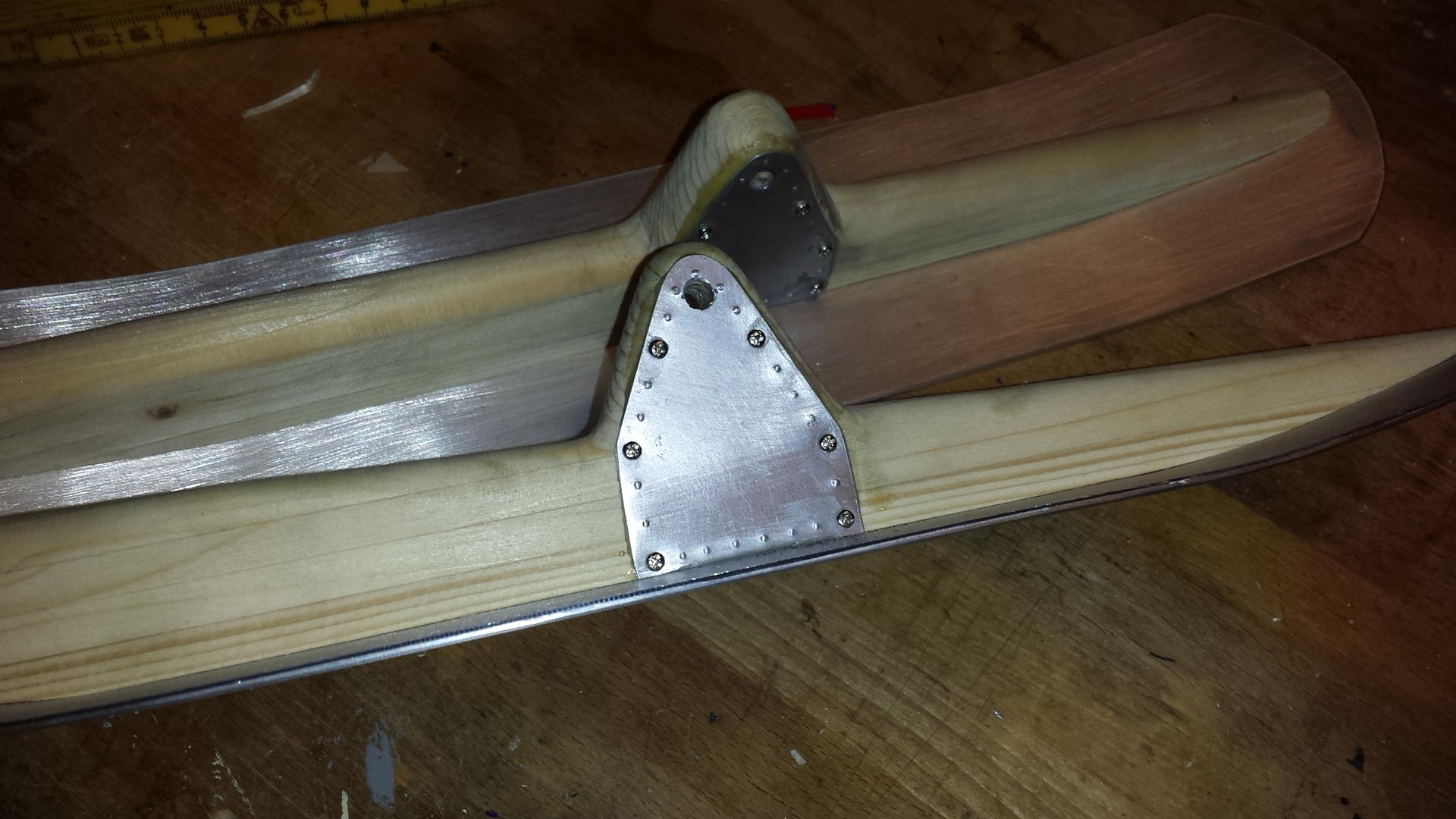 Treverket er laminert i lengde retningen, derfor disse doblings platene ved inn festingen.