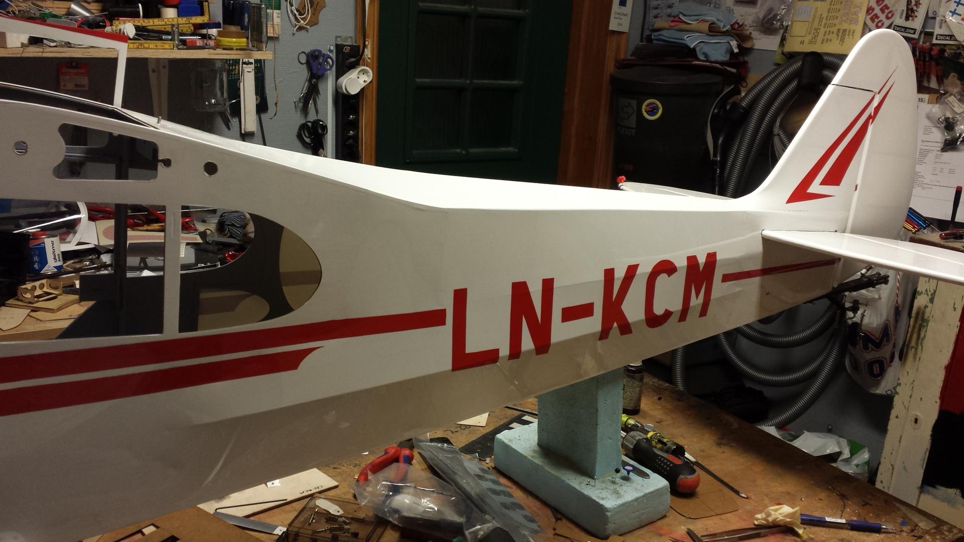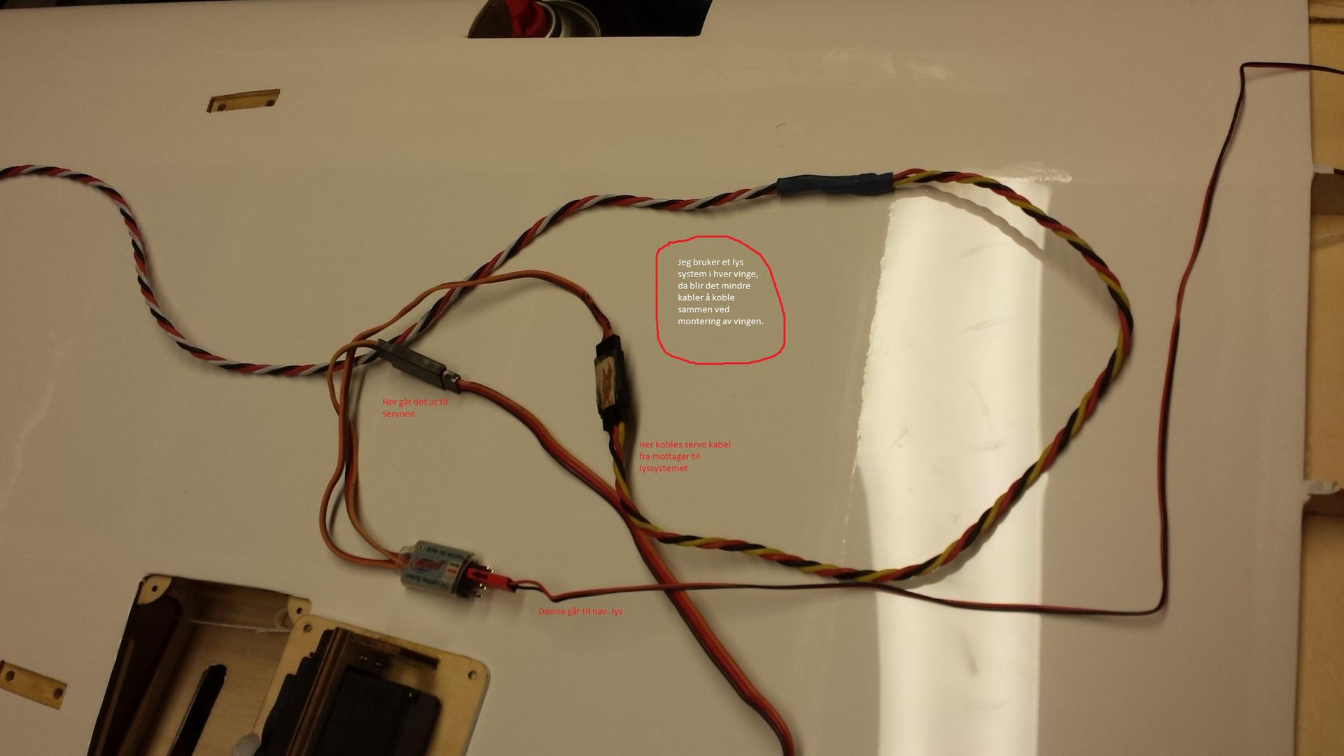 Hei, jeg bruker ikke kill switch i mine fly. Diode lysene kjøpte jeg hos HobbyKing, det er også der jeg har kjøpt begge typer lys anlegg. Jeg er i gang med å lime inn hengslene, jeg bruker syre fritt gris på leddet før jeg limer dem på plass.