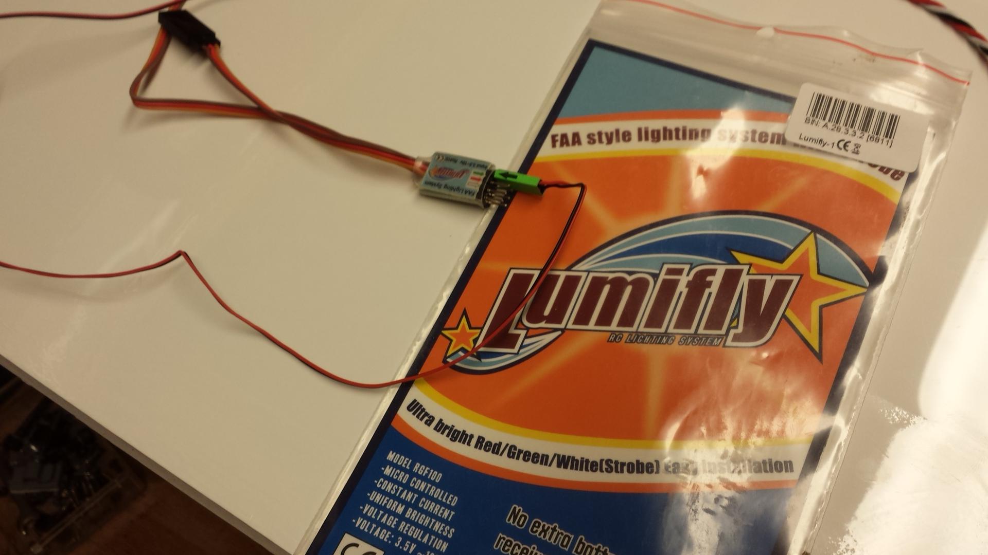 Denne gangen bruker jeg 3 sett av dette lys systemet, et i hver ving og et til halen.
