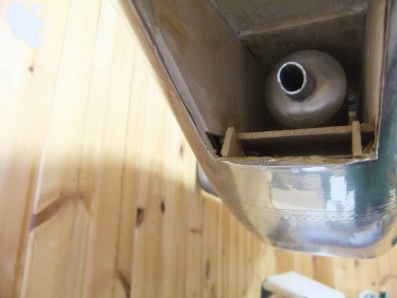 Eksosen tas ut bak der hvor radiatorlufta går ut originalt. Servo