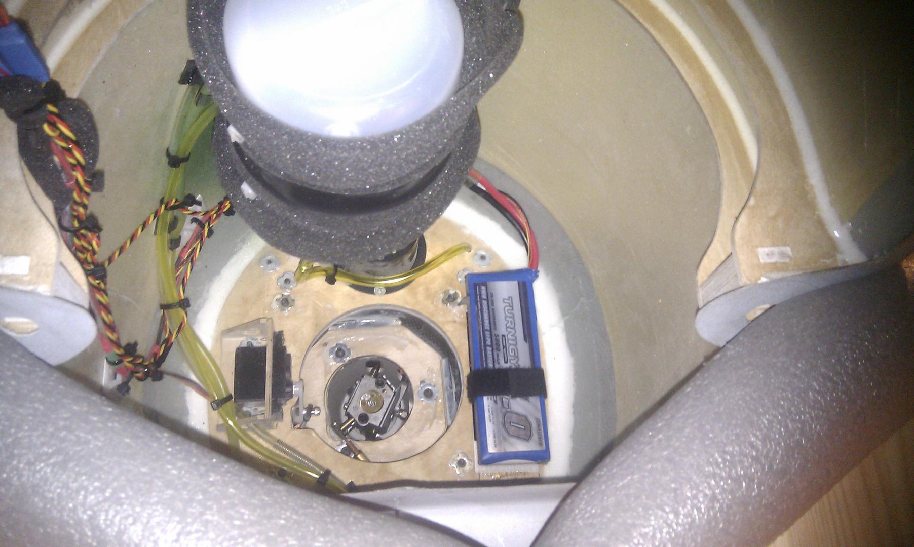 Flyet var en anlelse baktunkt ved første Cg test. Løsningen ble å legge pumpa og batteriet helt fremme i firewall.